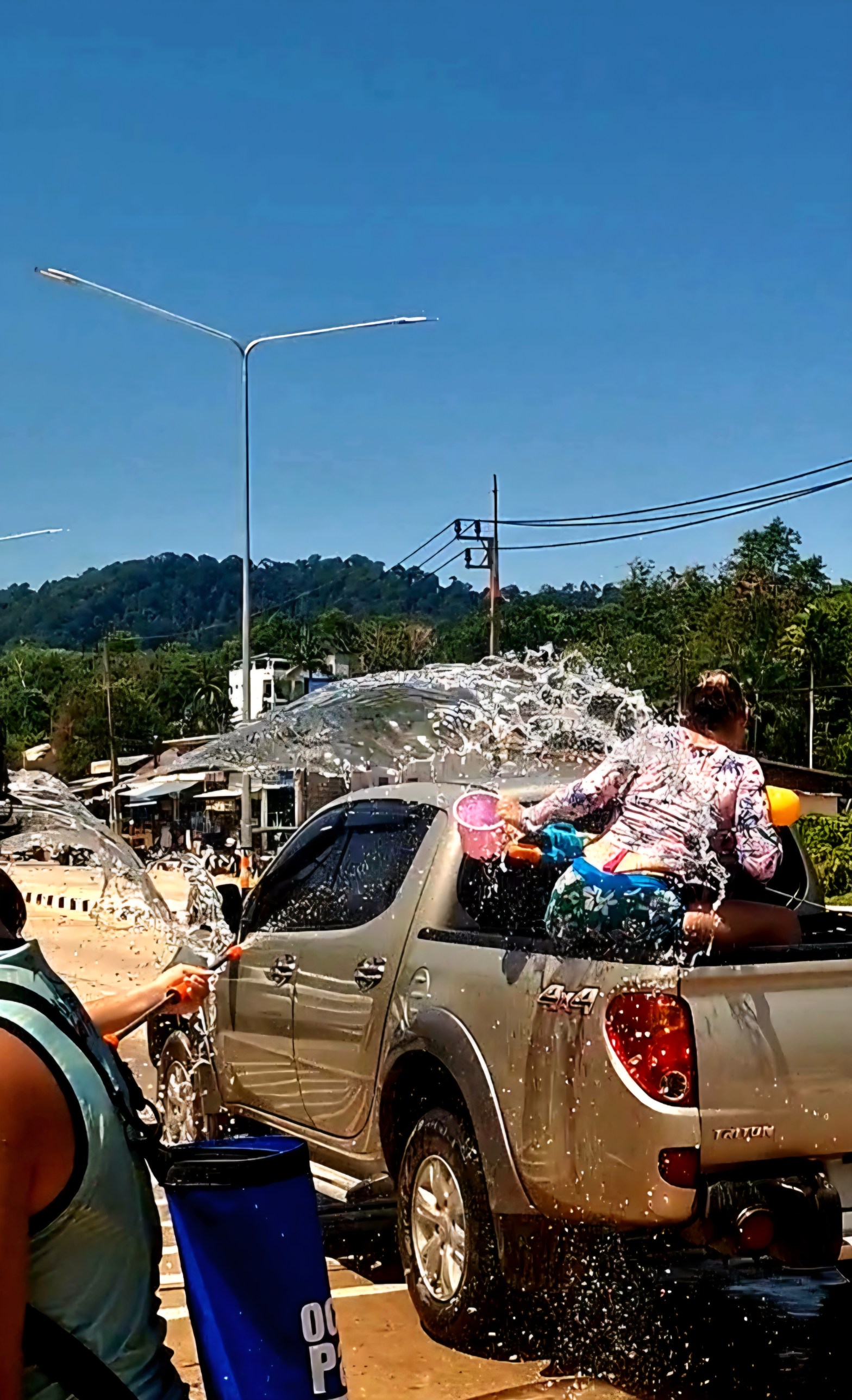 The tradition is that Water symbolizes purification and renewal, where you wash away unlucky events from the past year to face the new year clean and happy. So most Thais say ”Thank you” when they are completely drenched by buckets of water.