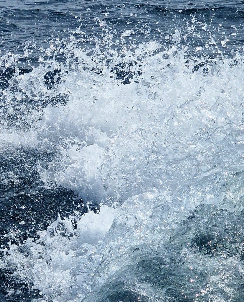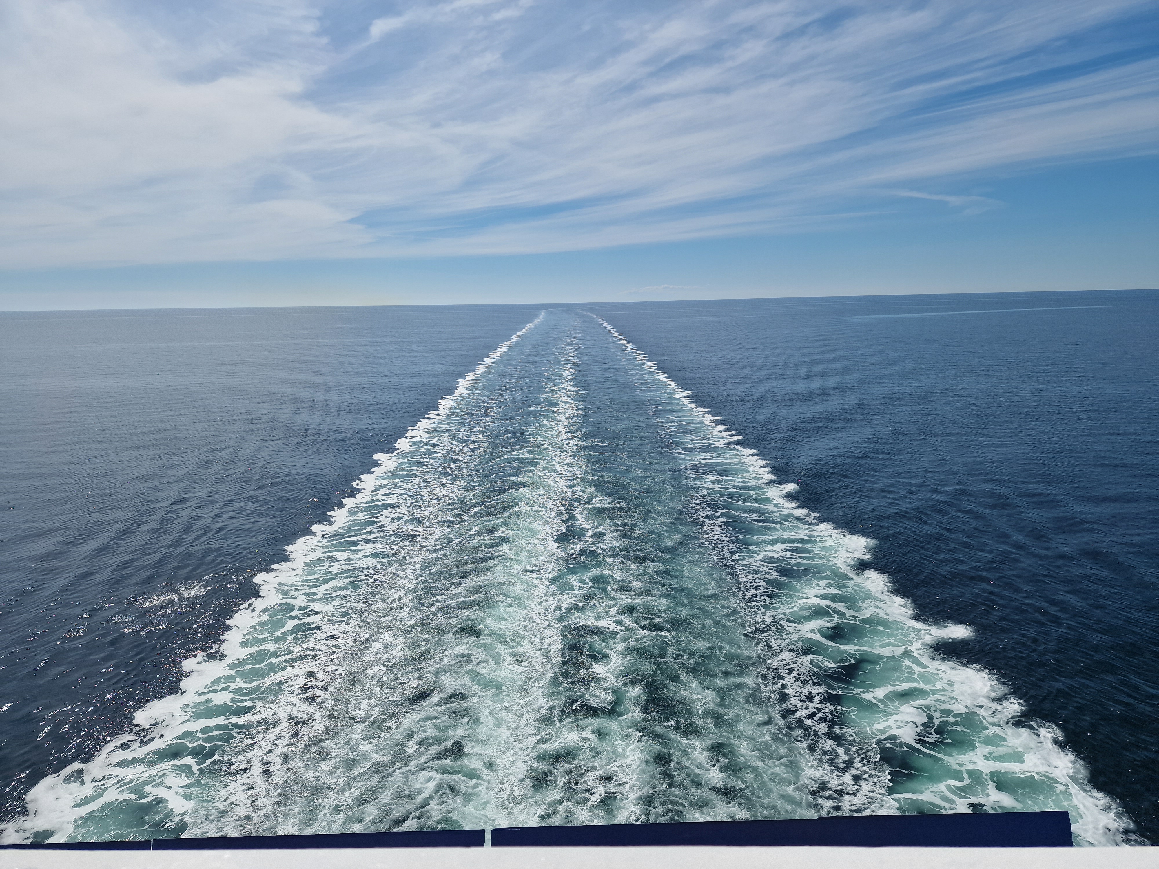 Det blev en resa på lungt hav….till skillnad mot all den grova sjön vi haft i flera dagar. Till sällskap har vi haft delfiner och olika havsfåglar. Vi tror att det åtminstone har varit Havssulor men resten har vi inte lyckats artbestämma mer än de vanliga trutarna och måsarna