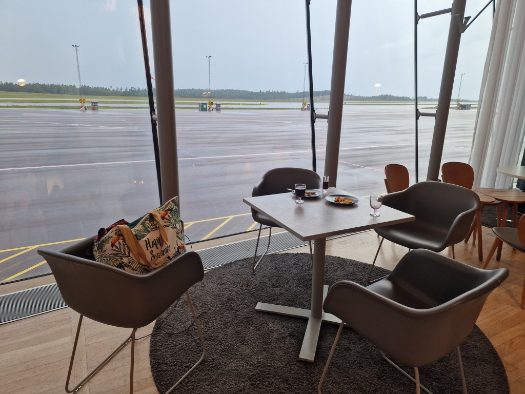 I Loungen på Landvetter flygplats Fantastisk utsikt ut mot start- och landningsbanorna
