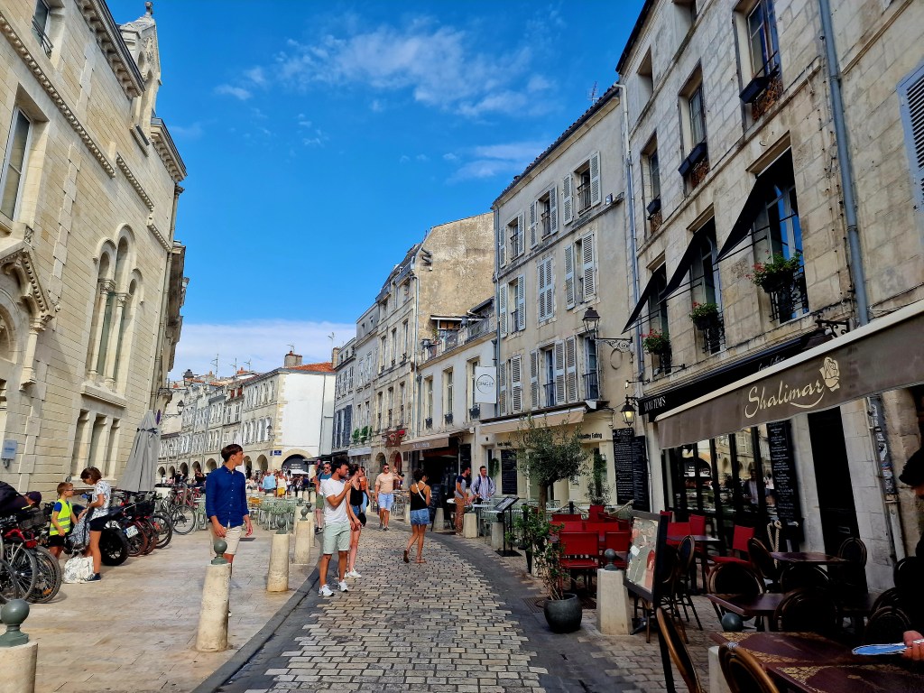 Landade tidigt i La Rochelle och tog bussen in till stan. Sedan en promenad i de tomma gränderna fram till Vilja i en av hamnarna