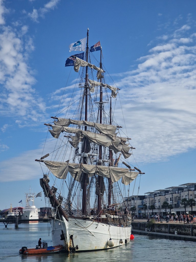 Njuter av mojito, god mat, vitt vin, sällskapet och miljönSlussporten i lågvatten till den innersta och minsta hamnenEn tremastad segelskuta kommer in genom slussen till vår hamnOtroligt vacker Och med en gummiboll som bogpropeller En av alla gatumusikanter Det söta lilla hamnkontoret i gamla stan