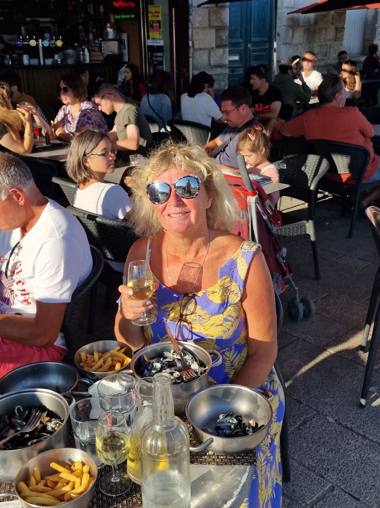På kvällen blev det Moules Frites med vitvin på en av alla hundratals serveringar och därefter ännu mer promenad i myllret av folk och med alla gatumusikanter
