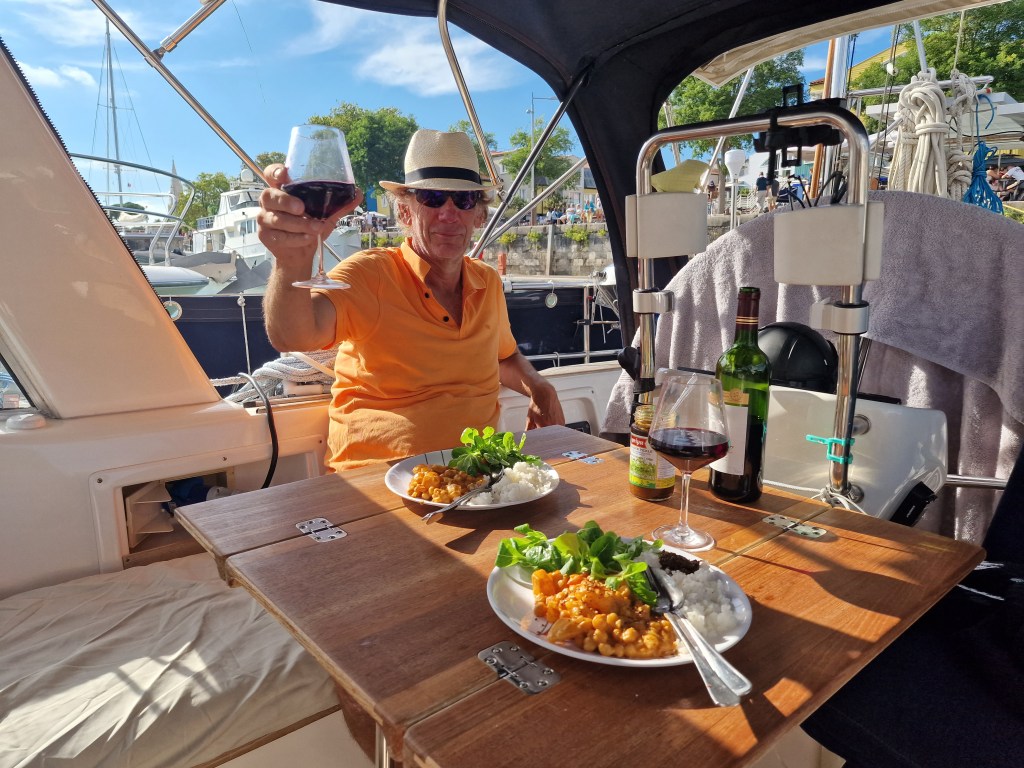 Dagen avslutades med god middag och ett glas vin i sittbrunnen