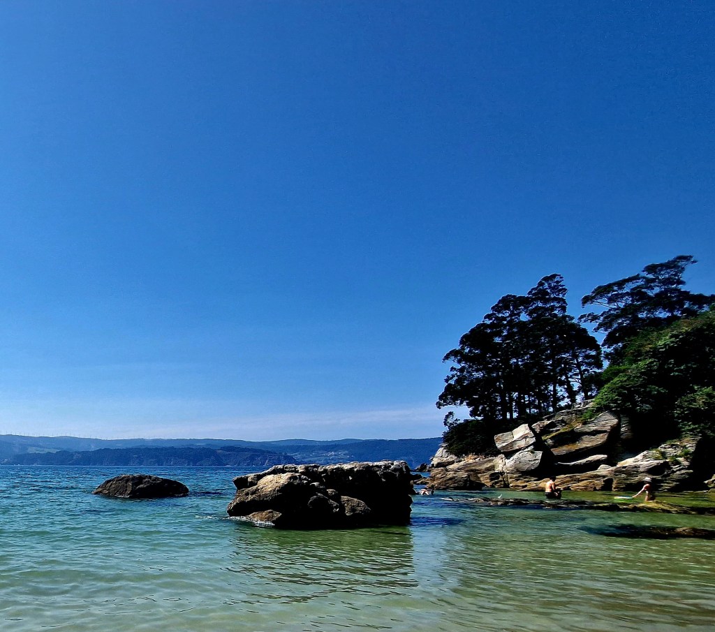 Vi fick en härlig tur från Luarca till en vik med lång sandstrand norr om Viveiro. Nu har vi hamnat i Galicien. Solen sken några timmar under resans gång så det var bäst att njuta då vi för det mesta har haft det mulet och ganska svala vindar.