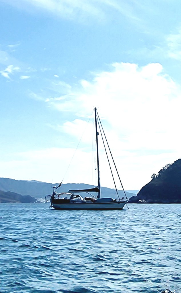 Vi lämnade vår ankringsvik ganska tidigt på morgonen o siktade på att komma till A Coruna. Ett oväder är i antågande och vi behöver skynda på farten lite för att inte bli inblåsta, inregnade eller fastna i dimma.⁹