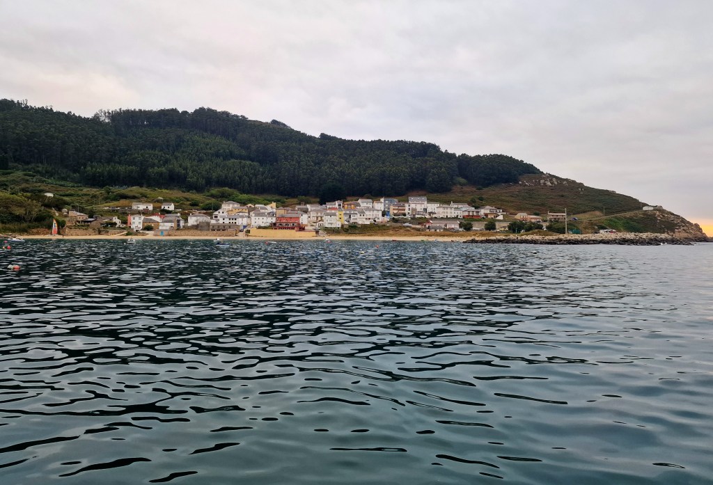 Natthamn blev på svaj i en vik nära staden Muxia som ligger ut mot Atlanten. Till middag blev det gambas som vi köpte dagen innan.
