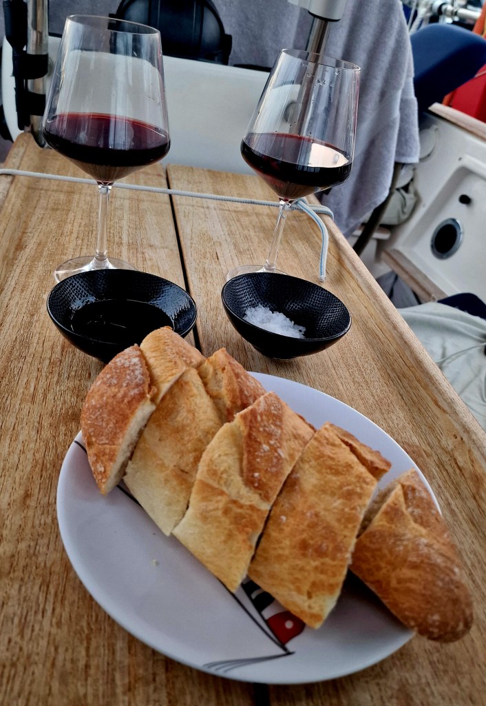 Riktigt gott med rödvin o färsk baguette doppad i olivolja o flingsaltSkål!
