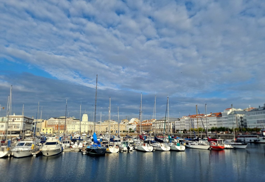 Efter en lång resa kom vi fram till A Coruna. Några båtar vi mött under resans gång hade också kommit dit. Hamnen och den stora hamnpromenaden var välskött och de var väldigt hjälpsamma på hamnkontoret