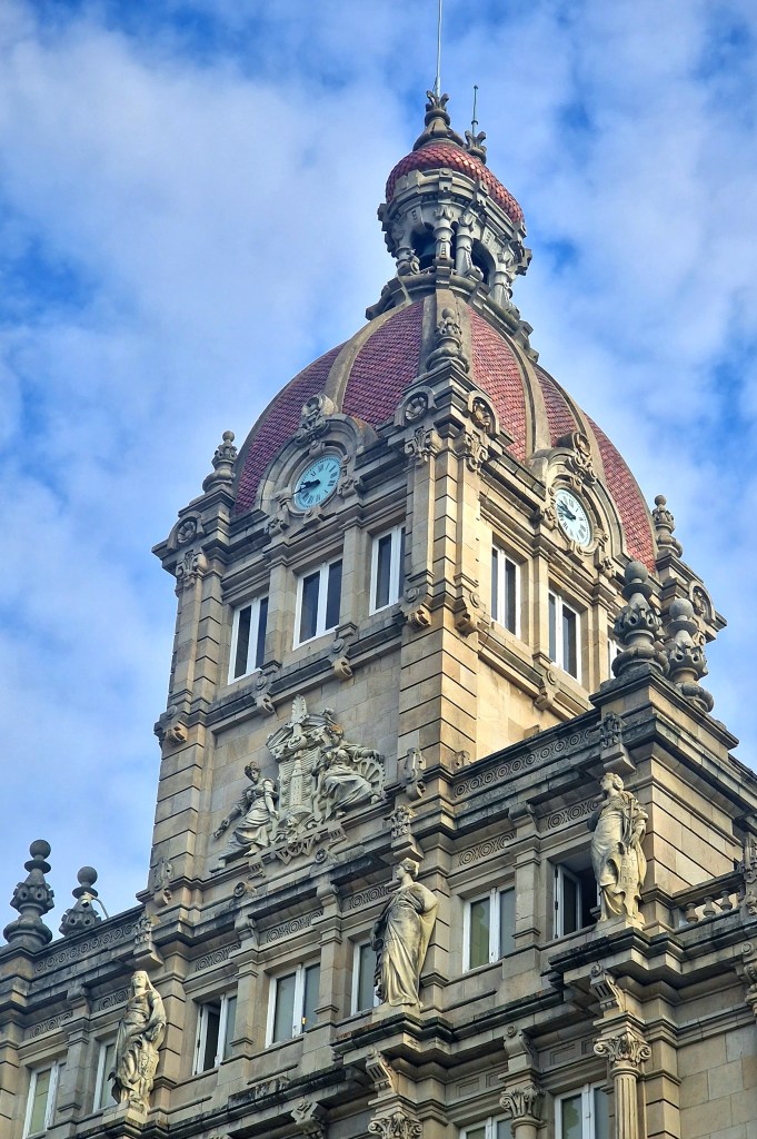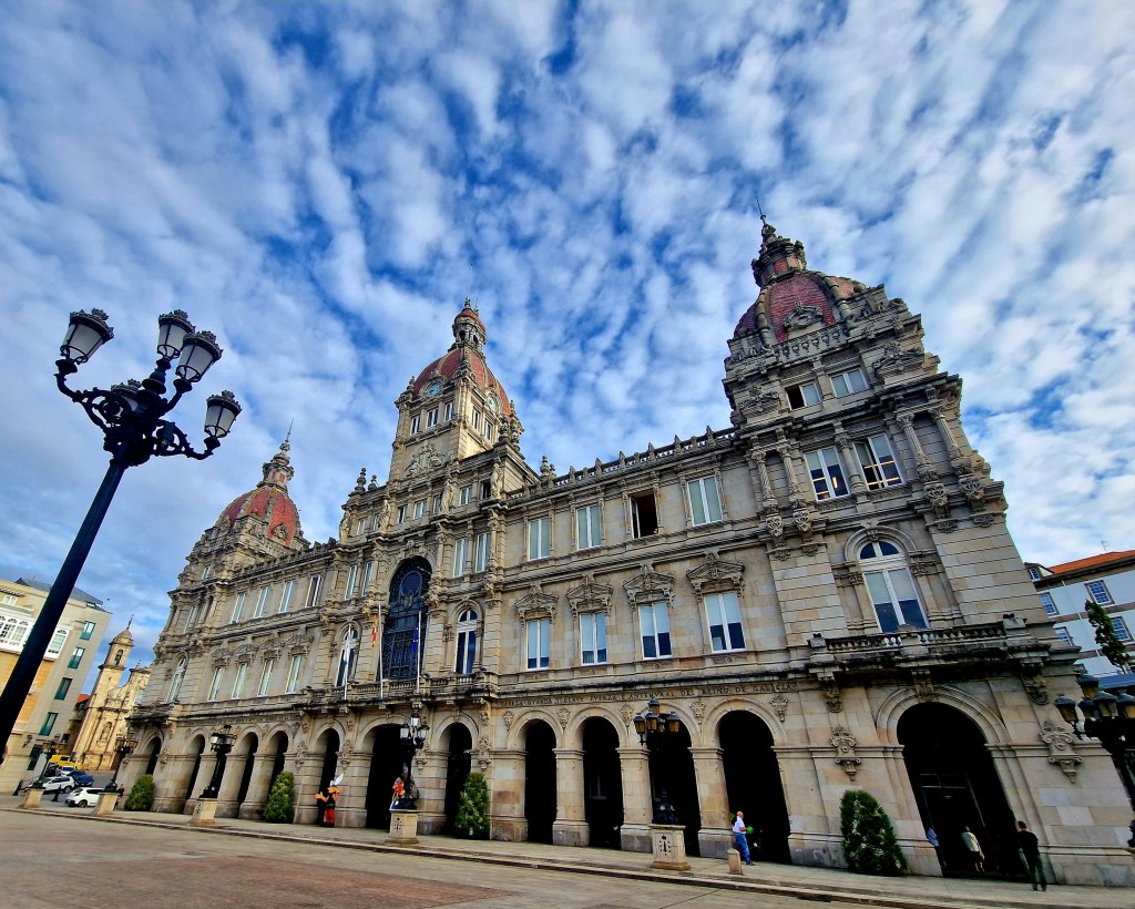 En Borg i inloppet till A CorunaDet fanns många otroligt vackra kyrkor, som denna, Iglesia de San JorgeDen rena o fina hamnen med stora promenadområden och gott om serveringar, affärer och trånga gränder där biltrafik var avstängdPå torget Plaza de Maria Pita ligger vackra the City Hall