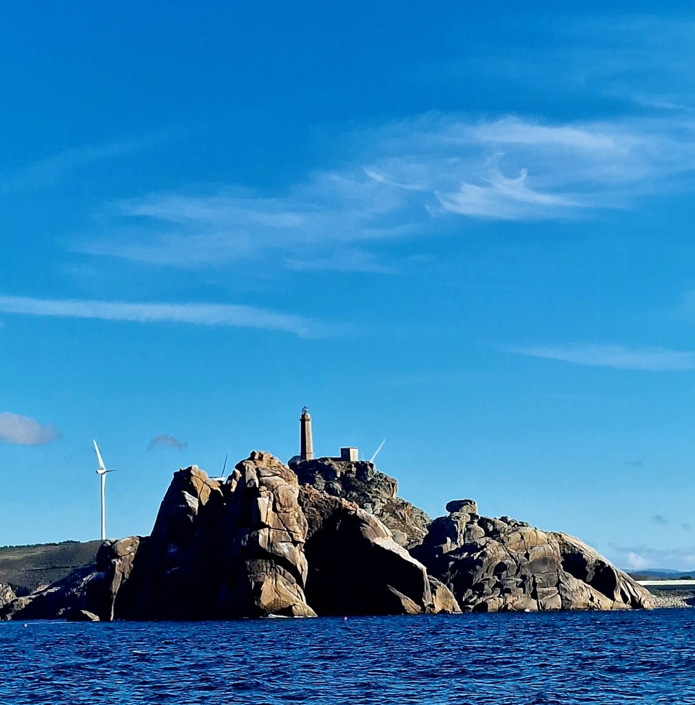 Vi passerade Fastlands Spaniens västligadte punto Cabo Tourinan men fick inte fotograferat då det låg helt insvept i låga moln. En stund senare passerade vi även Cap Finisterre som också kallas ”Världens ände”. Många som går pilgrimsvandringen till Santiago Di Campostella fortsätter även hit. En vandring som står på min ”Bucket-list”.