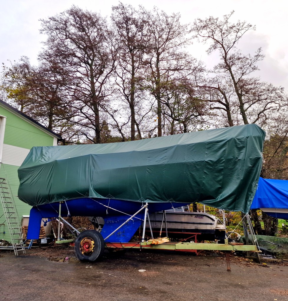 Min båt S/Y Kailani har, för första gången på flera år, tömts och placerats på land. Förhoppningsvis väl inpackad för eventuella vinterstormar.