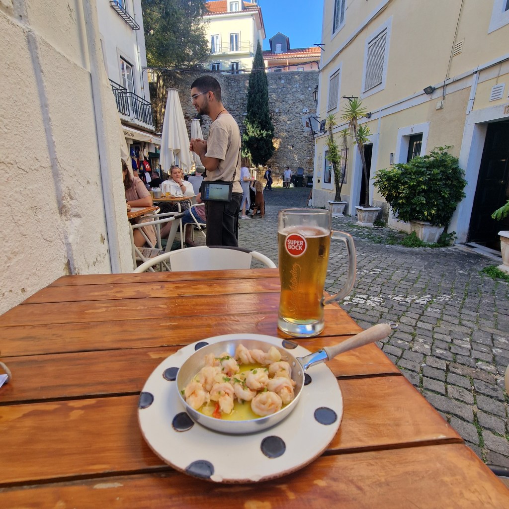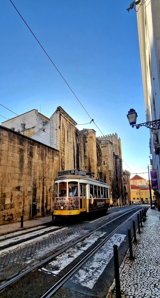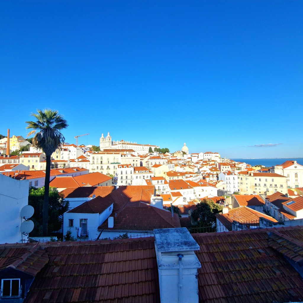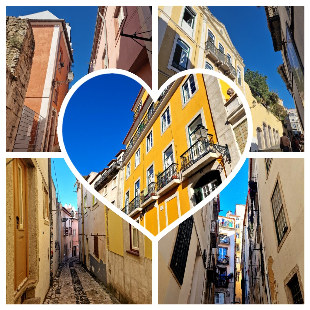 Smala gränder och färgglada husEn av Lissabons alla spårvagnarÄlskar gamla och slitna dörrar! De är så vackraTriumfbågen med utsikt mot det stora torget Praca Do ComercioVackert portugisiskt kakelVita hus o orangea tegeltakLunch på en uteservering uppe på en kulleUtsikten var slående vacker