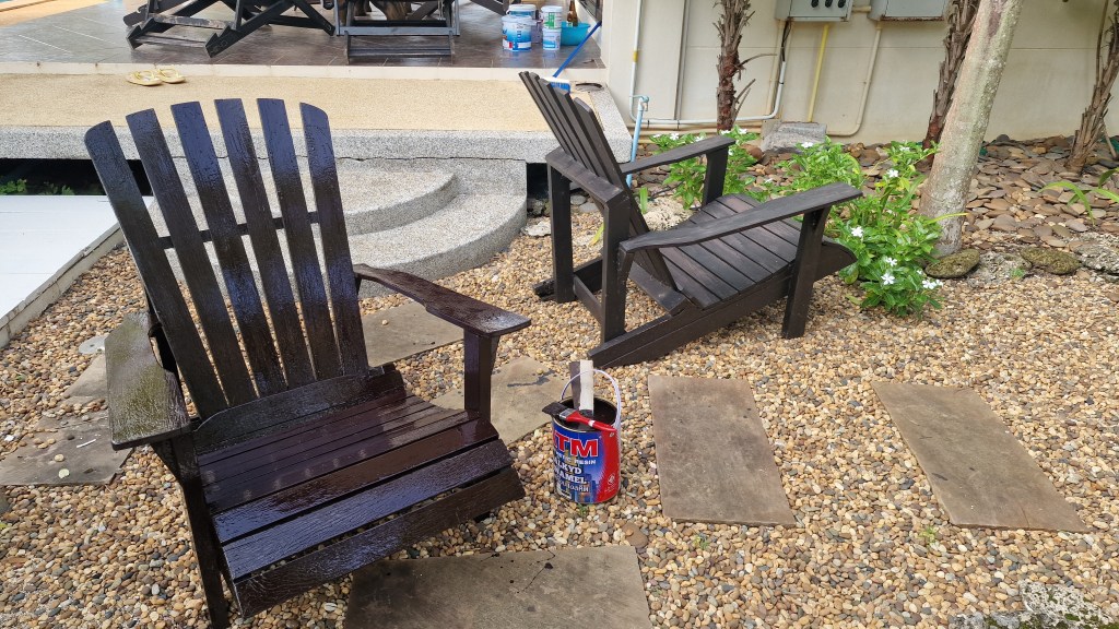 Blandat med lata dagar i poolen och under taket på terrassen har jag ätit god mat, träffat vänner och oljat o målat utemöbler. Thailändarna tycker det är väldigt roligt att jag själv utför en hel del arbete. Samtidigt lever jag ju ett lyxliv. En gång I veckan kommer en hel hop av städerskor som städar, diskar, byter sängkläder o tömmer sopor. Nästan varje dag kommer någon och ser till poolen och en gång i veckan kommer ett trädgårdsteam som sköter om trädgården. En sömmerska kom inom och sydde nya dragkedjor i några sittkuddar och några personer från området kom inom och tittade igenom den ”att-göra-lista” som jag noterat. Lite skillnad från livet i min lilla båt Kailani.