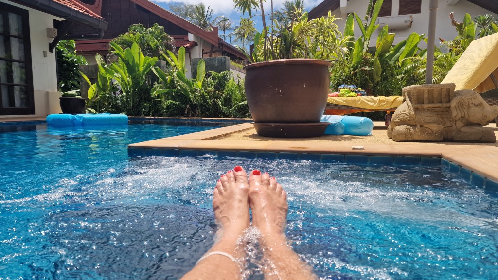 Early the next morning I took a taxi back to the airport and flew to Krabi. Was picked up by a driver I have a lot of confidence in and after lunch I was in my beloved house. Installed myself and soon after jumped into the pool with the thirty-two-degree water. Lovely!