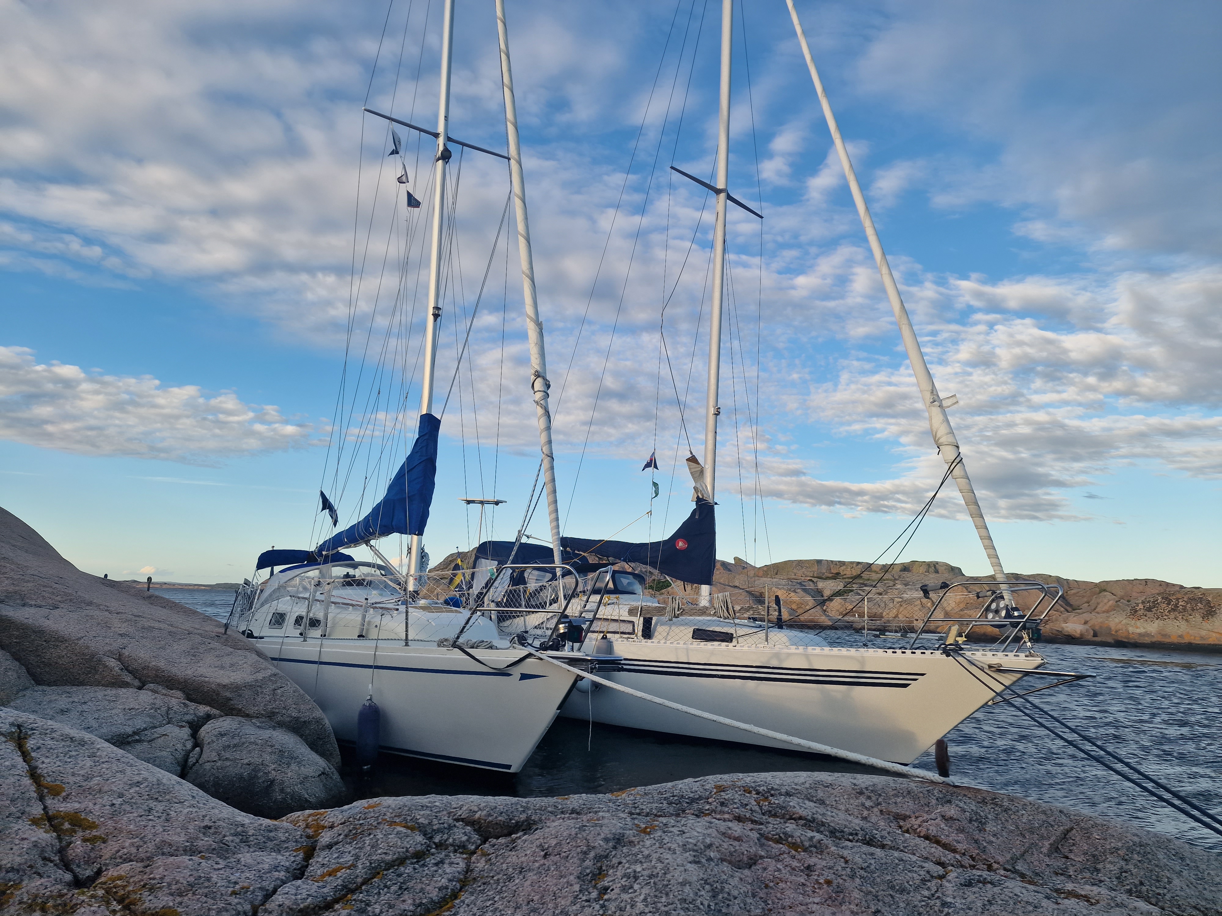 There have been a series of social meetings with friends from the fb group Mingel & Båtliv. Great fun with all the meetings! We have enjoyed with our friends and lay on some of my pearls in the Gåsö archipelago. A wonderful friend, Gigi, who comes to me every year, has also managed to come here. For a day we had a very successful and beautiful star anchoring. If I’m not mistaken, we were twelve boats. Mixed sizes and of course two motorboats were also welcome. The star anchor was noticed by a local newspaper so it got publicity and lots of likes.