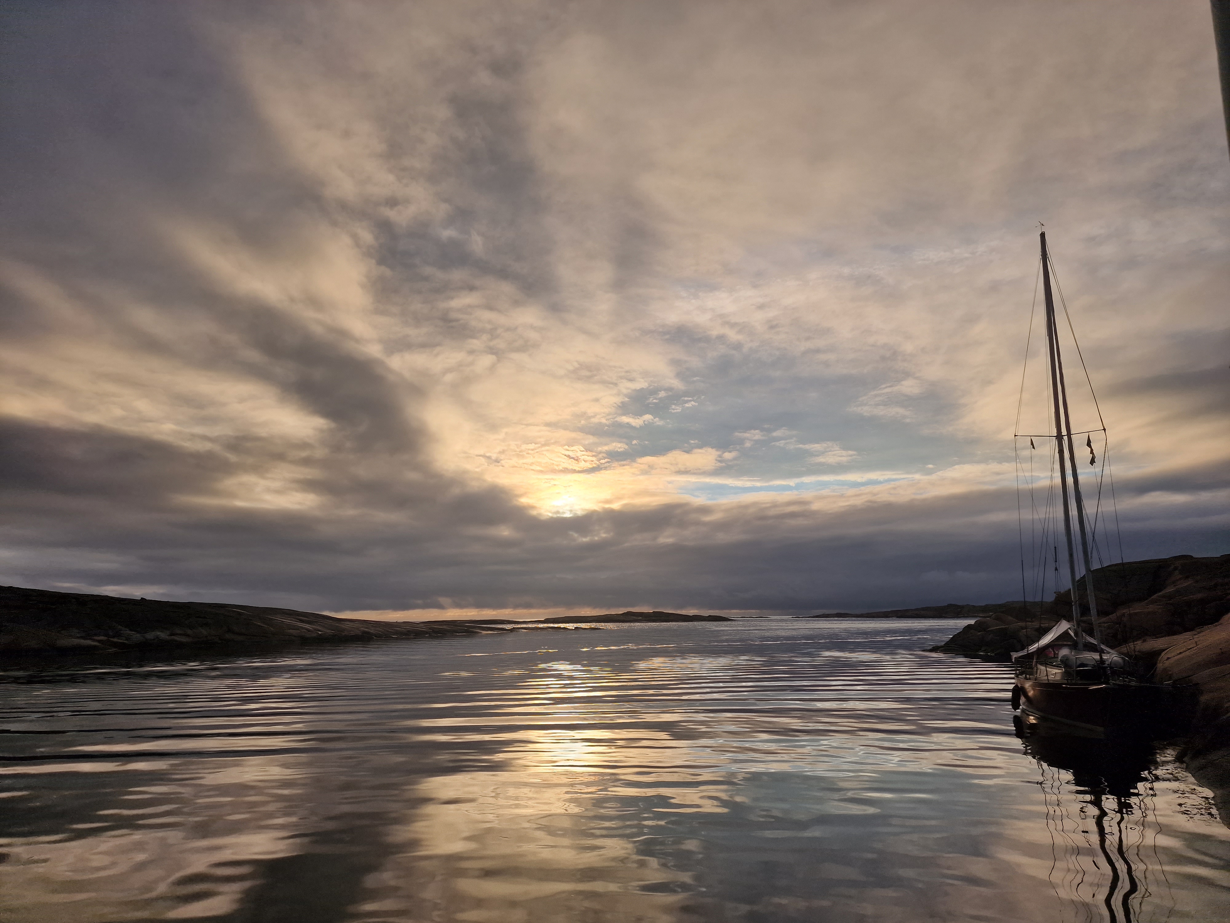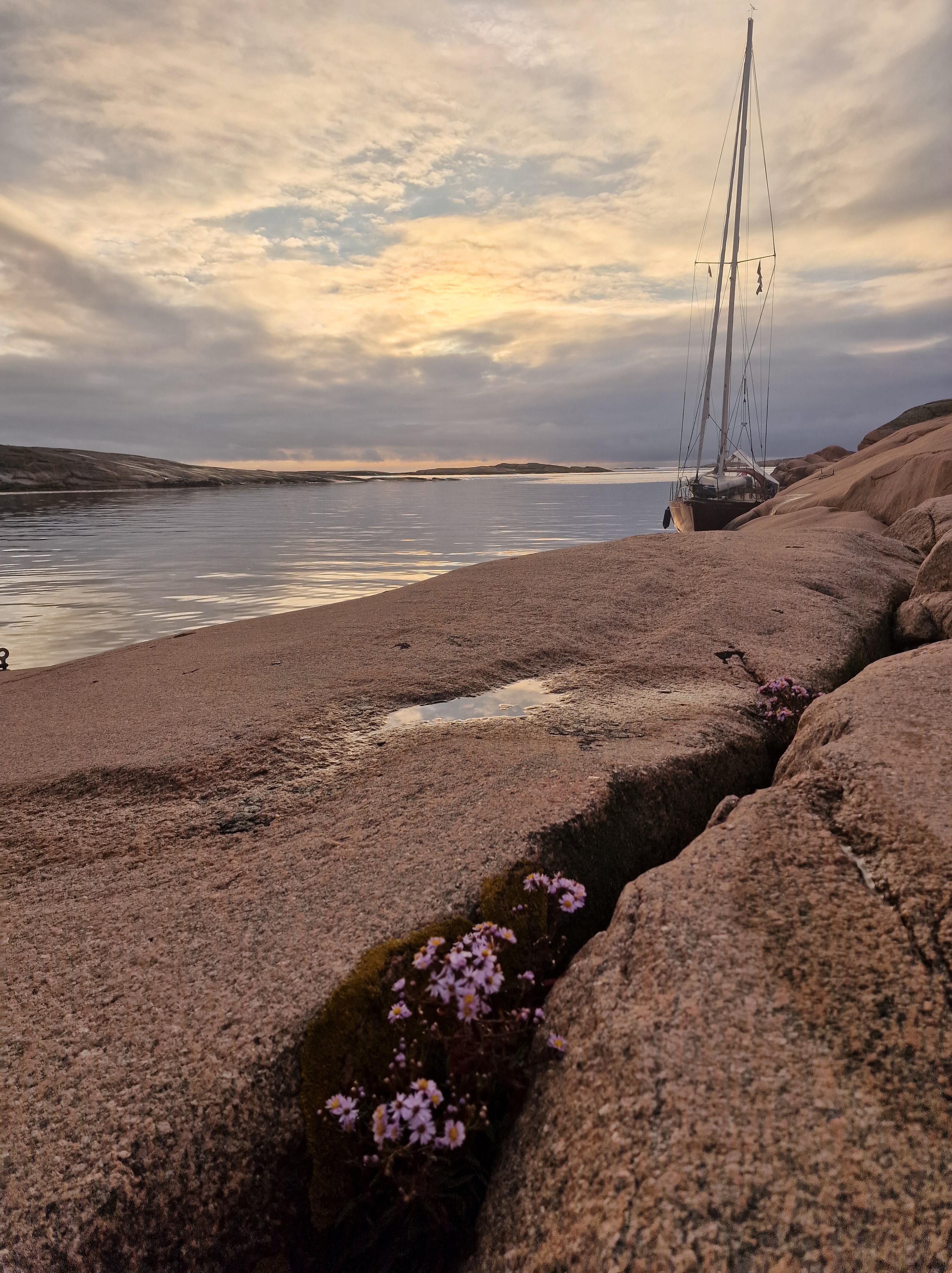 Even before I was due to start work, I sailed out into the archipelago! The first access to an Island and the nights out there was on Usholmen. It was in the middle of the week and Kailani was pretty much the only boat out. It was a wonderful feeling to come out to these bare, smooth and red granite rocks. The colors become amazing when the sun starts its way down towards the sea in the west. A magical feeling and experience that I am so happy to experience. Sunset at the far end among islands and skerries with a golden globe disappearing into the sea behind the horizon is indescribable