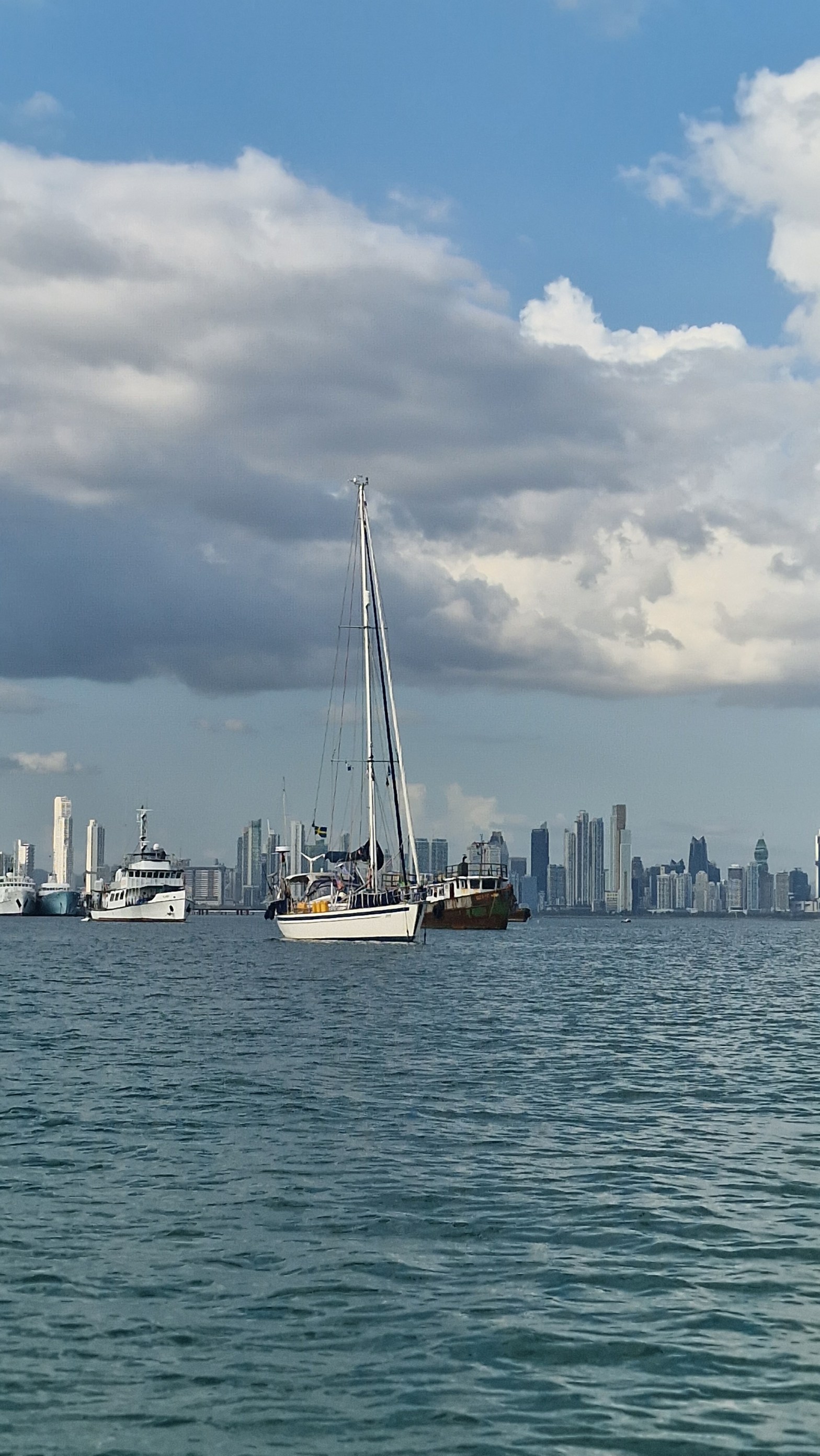Äntligen lämnar vi hamnen! Lite spända för att se om allting fungerar o inget vatten läcker in. Vi styr, i rak motvind, mot den omåttligt populära viken Muscet Cove. I högsäsong ligger nog hundratals båtar ankrade här. Det finns flera resorter, barer, sopsortering och t o m diesel o vatten att köpa. Inte undra på att många fastnar här i stället för att betala dyrt inne i en hamn. Vinden skall vara svag och vi känner oss nöjda. Det blir en lagom sträcka för att testa båten. Men, efter 2 timmar blåser det upp. Vi får 12 – 15 m/s rakt emot oss och dessutom stark ström. Känns som om vi inte rör oss framåt alls. Jan gasar på och ett fruktansvärt ljud låter någonstans – propeller eller motor. Vi tittar på varandra och tänker samtidigt att vi nog inte skall gå till den yttre stora viken utan söka oss till den inre som ligger i våglä. Blåser gör det även där för det är ingen ö som skyddar utan endast korallrev och en låg strand. Det känns underbart att ankra upp efter ca 1 månad i hamn o mest uppe på land. Vi njuter av att vara ute men hoppas vinden lagt sig till imorgon så vi kan fortsätta till Muscet Cove o stanna där några nätter