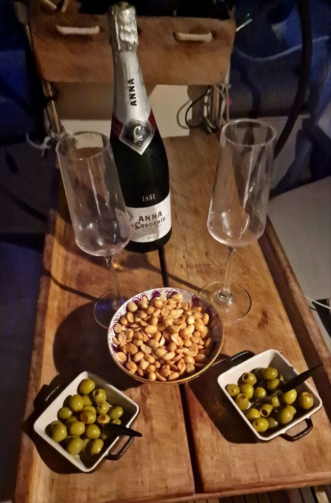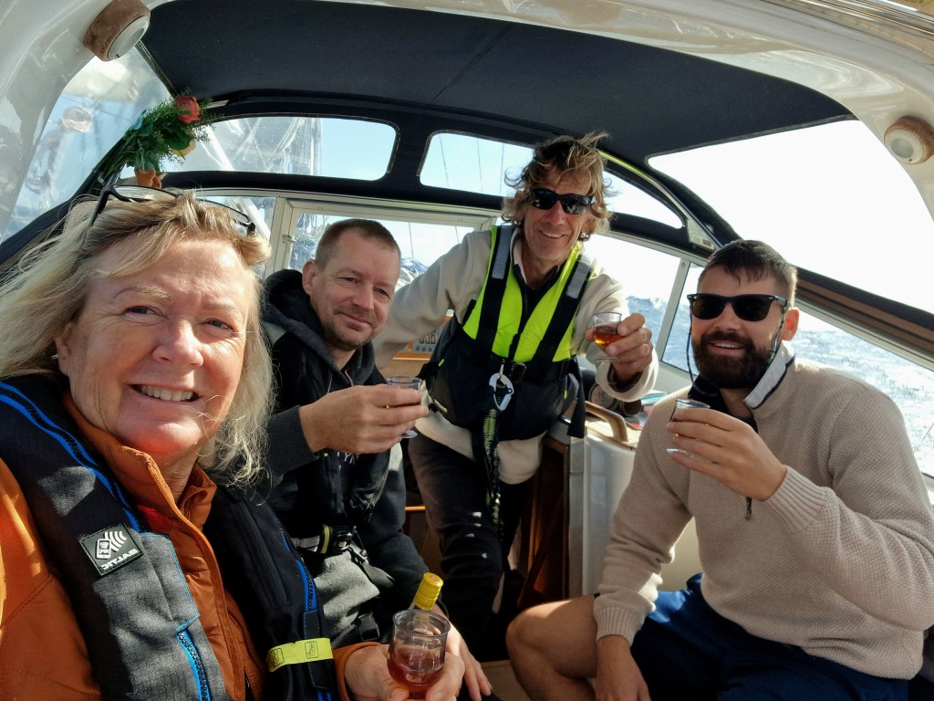 It’s Jan’s birthday today too and Marie has baked a cheesecake. At afternoon coffee there will be singing and cake with candles, much to Jan’s delight. Almost the entire cake is gone in one bite. In the evening we go ashore to eat at the pizzeria. What a luxury not to have to cook the food on board and that the plate, glass and cutlery are still on the table without being thrown around from one side to the other so that we have to be prepared to catch things all the time. I think we would have been experts at the Robinson elimination competition where they have to catch a pole that suddenly becomes illuminated. Our reaction skills are at their peak now.