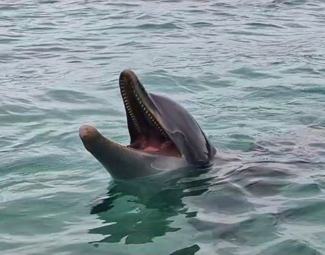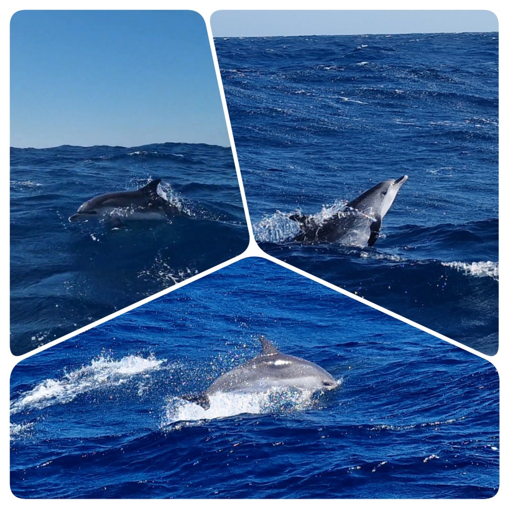 Vilken häftig frukostunderhållning vi har! Hundratals delfiner simmar runt i viken Hanatefau, fortfarande på ön Tahuata men längre söderut. De hoppar och leker och jagar säkert fisk. Det är en riktig wow-upplevelse. Vissa gör höga höga språng upp i luften och snurrar runt sig själva flera varv innan de plumsar ner i vattnet igen med ett stort plask. De har lekt här inne i flera timmar nu och vi glömmer äta frukosten för det är så fascinerande.