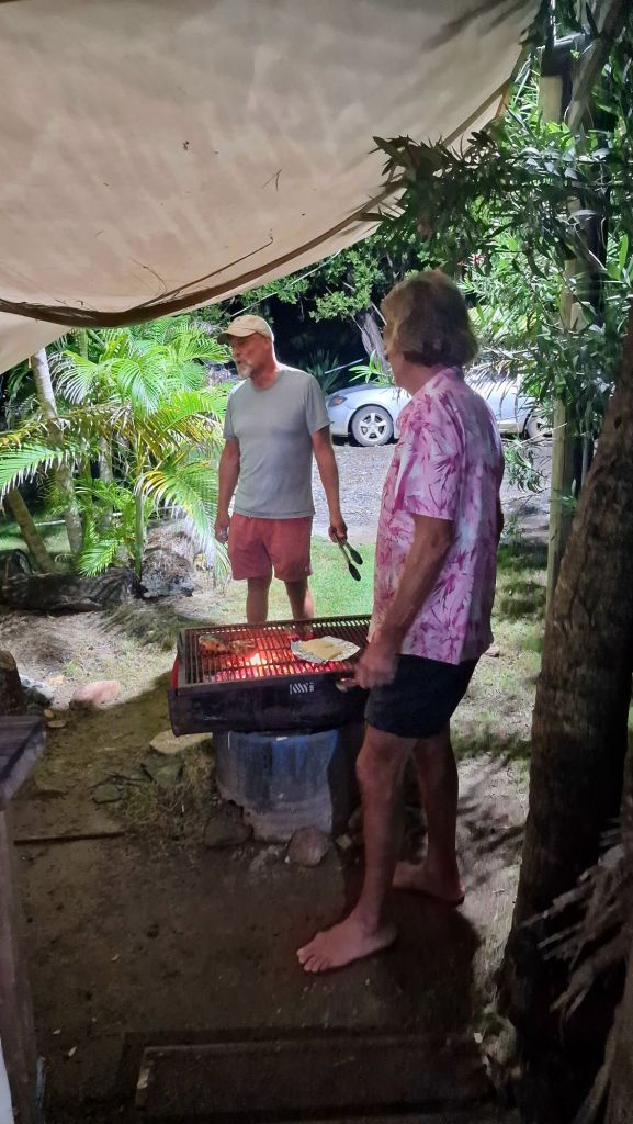 It feels strange to get solid ground under our feet again. The first steps are staggering and wobbly. Our heads spin and we walk as if we are under the influence of alcohol. Everything around us moves. It takes a few minutes before our bodies start to adjust and our steps go as they should, straight ahead. The village we have arrived at Taiohae Bay is small and sprawling. There is a hospital, a few grocery stores, bingo and a pizzeria. It is the middle of the day now and therefore too hot to walk around so we immediately take the thing back out to Vilja again. We are tired after almost a month at sea, an early morning today and the tension of arriving so that it will be dinner and an early evening to bed. Finally we get to sleep all night without night guards and without Vilja rolling around in the rough sea.