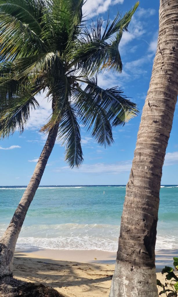 Viken Hanamoenoa är vacker med en sandstrand med palmer nedanför de gröntäckta bergen. Tyvärr är det stor sjöhävning så att ta jollen in är nästan omöjligt. Här ligger många segelbåtar före oss så vi lägger oss längst ut i viken. Det är så skönt att varva ner och ta det lugnt, njuta av utsikten och ”bara vara”.
