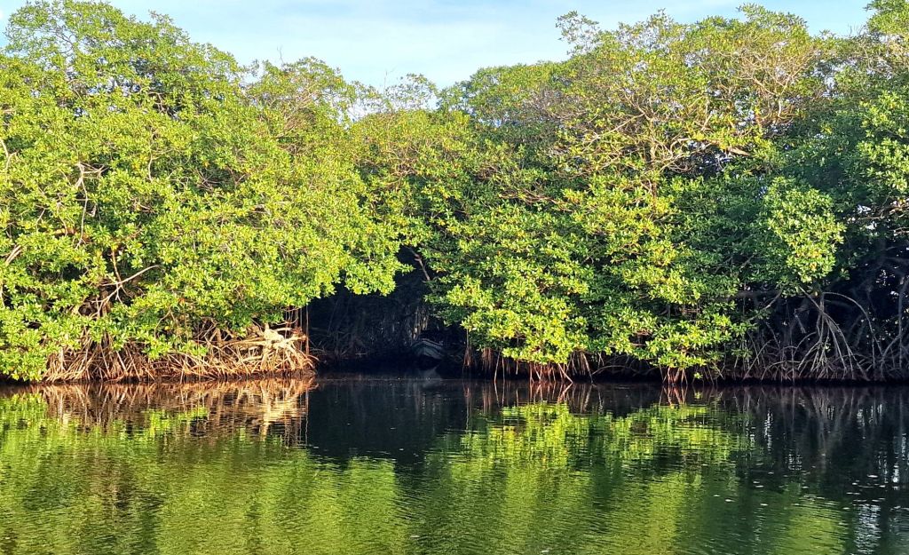 Redan när vi närmar oss viken vi skall in och lägga ankaret i möts vi av en stark blomdoft. Det är gryning med en otrolig soluppgång i fantastiska färger. De höga gröntäckta bergen skymtar dramatiskt fram allt eftersom ljuset tilltar. De stupar rakt ner i det djupa havet medan de dimhöljda topparna tronar majestätiskt upp sig mot skyn