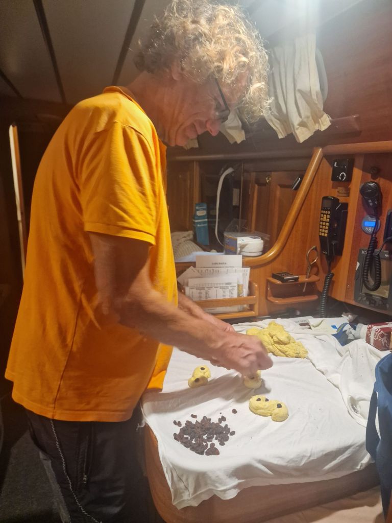 It’s a pretty pleasant sail. A little rough, especially the first day, but 15-20 knots of wind on average. Only a few squalls at night and no thunderstorms directly above us. It’s almost a full moon so the nights are lit up by the sea and the sky that sparkles in silver and crystal. The days flow by and we read, enjoy and relax. A couple of times a day we turn on the Starlink and get the opportunity to get weather forecasts, read emails and have some contact with the outside world.