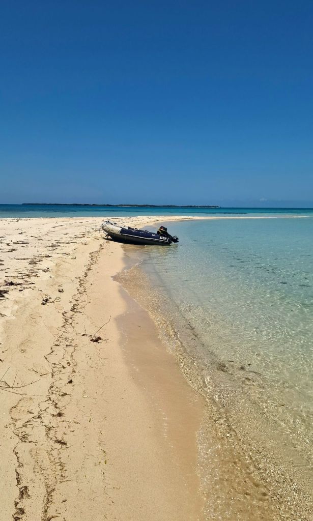 On the last night we slow down to get in the morning and not in total darkness. Long before we arrive we can see that the sky is lit up by all the lights on the small island. We make it through the pass and then motor to the first anchorage – in front of the container port. We are the only sailboat here. Wonderful and strange feeling! It is Saturday morning and we don’t know if we can check in during the weekend. And if we can’t, do we have to stay in the boat for two days? We launch the dinghy and make our way to the shore and the customs office, which has an office here. It looks closed but inside a room there is a man. Jan knocks on the door and he opens it. It is a security guard who barely speaks English. This is French territory and since tourism barely exists, few people speak English. The guard calls the police and an hour later they come and we fill out two papers. Then it’s done. Fastest and easiest check-in in years. We are in ”France” so our passports are not stamped and we have unlimited time here. We ask if there is a lot of tourism on the island and they proudly answer ”Last month there were 5 boats here”
