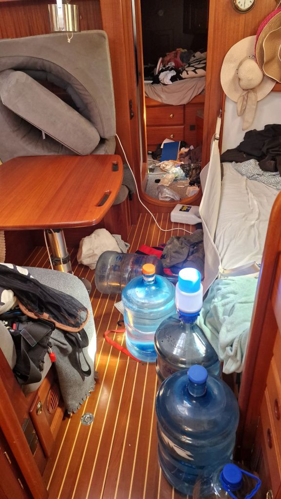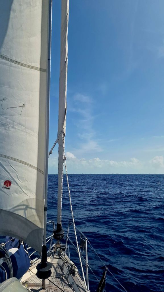 Nu sitter vi i sittbrunnen och kopplar av. Det blir inte mycket gjort idag och det är skönt med en avkopplande dag efter att ha förflyttat oss nästan tolv timmar varje dag i flera dagar. Till lunch äter vi linsgryta för tredje dagen i rad. Det börjar bli tomt i kyl och skåp på färskvaror efter att inte ha kunnat handla på över en månad. Förutom lite grönsaker i Havanna. Men vi klarar oss. Konserver och torkade bönor har vi gott om. Och nudlar.
