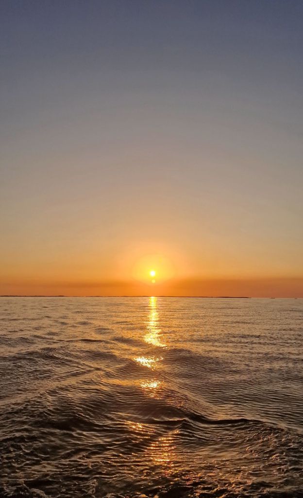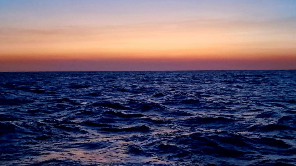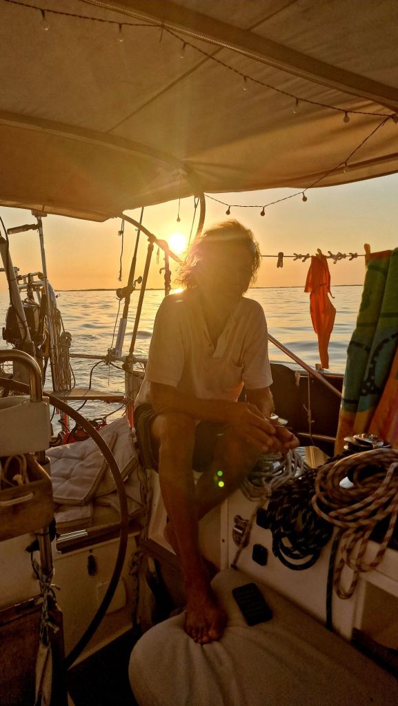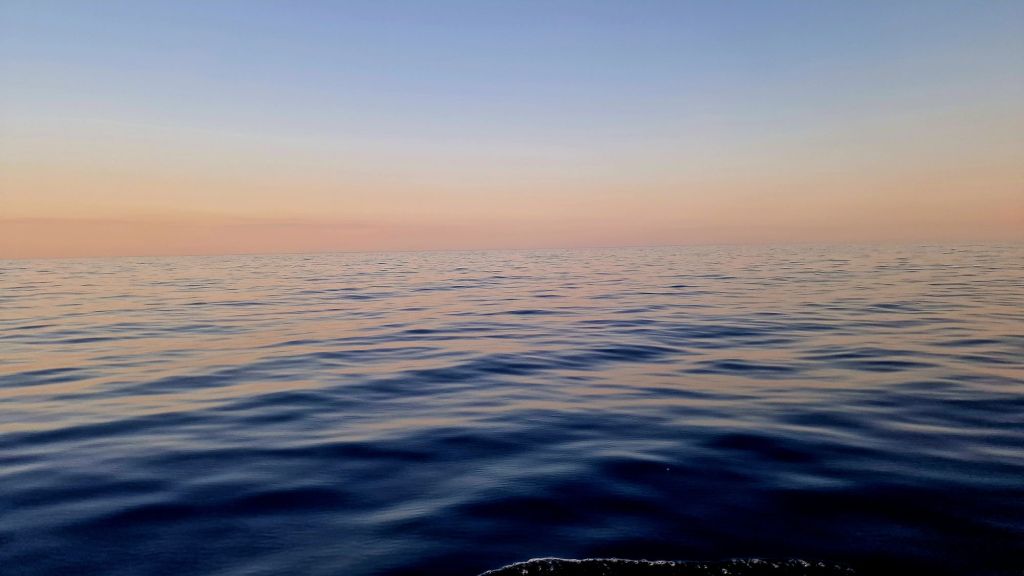 It is getting dark and we are on our way to Santiago de Cuba. We left around 11.30 this morning and it has been very quiet the whole time. For a little while we tried to sail but the sails fluttered and we came forward at about 2.5 knots. After that, the small wind disappeared completely and it has been and is completely mirror-like. We follow along the coast and on our port side we have Cuba with its green-clad mountains. We will be there early tomorrow morning. We need to slow down a bit so that we don’t arrive before dawn. We avoid entering a new place when it is dark as much as possible.