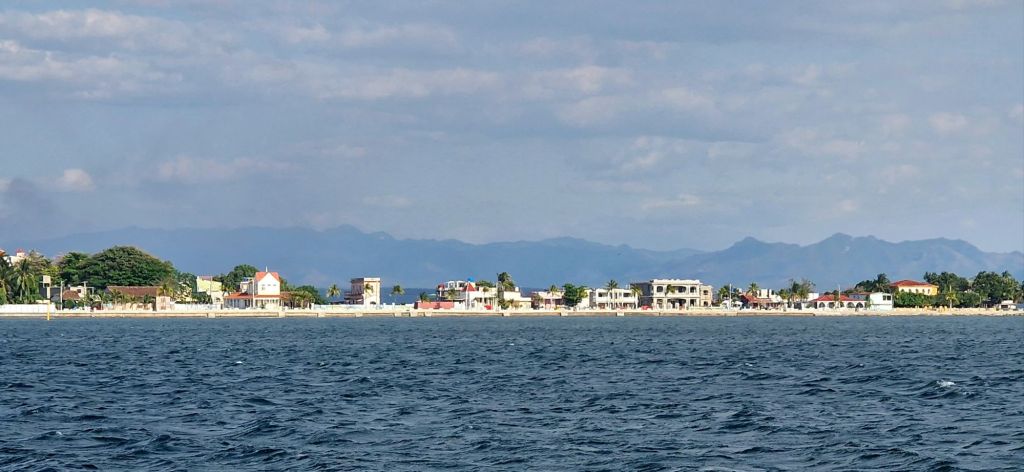 Det börjar mörkna och vi är på väg mot Santiago de Cuba. Vi lämnade runt 11.30 i förmiddags och det har varit väldigt stilla hela tiden. En liten stund provade vi att segla men seglen fladdrade och vi kom framåt i ca 2,5 knop. Därefter försvann den lilla vinden helt och det har varit och är helt spegelblankt. Vi följer längs med kusten och på vår babords sida har vi Kuba med sina grönklädda berg. Tidigt imorgon bitti skall vi vara framme. Vi behöver hålla igen lite på farten så att vi inte kommer fram innan gryningen. Att ta sig in till en ny plats när det är mörkt undviker vi så gott det går.
