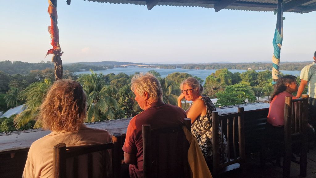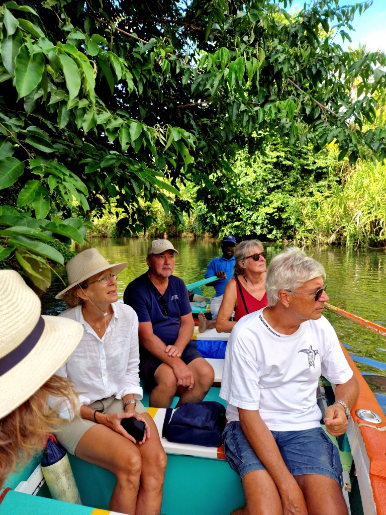 After this wonderful park we drive on to Sri Siva Subramaniya Temple. As we wrote, a significant part of the population in Fiji originates from India. They have retained much of their culture, including clothing, food, language and religion. There are therefore many temples to visit. We choose one of the largest and most colorful Hindu temples in the entire Pacific. The gods Shiva and Parvati are worshipped here. There is a dress code to be allowed to enter, so I cover my shoulders and knees and Jan borrows a sarong to tie around her. We also have to take off our shoes and go barefoot. It is very beautiful and colorful. Several beautiful ceiling paintings, pillars in countless colors and statues of different gods adorn the temple. We are not allowed to take photos inside the temple, but we are welcome to take photos outside. In small rooms there are holy men who welcome offerings and bless worshipers with incense and a dot on the forehead. Everything feels genuine, beautiful and peaceful.
