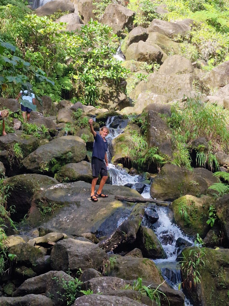 Dags för en roadtrip på ön, Viti Levu, i Fiji. Vi ligger i en marina på SV-sidan som heter Vuda marina. Det var här vi blev så otroligt välkomnade för några dagar sedan med sång och dans. Nu vill vi ut och se en del av ön. Det är vänstertrafik på Fiji, vilket inte är så konstigt med deras nära samarbete med Nya Zealand och Australien. Samt att över en tredjedel av ön bebos av ättlingar till de indier som importerades som arbetskraft på sockerrörsplantagerna runt sekelskiftet 1800-1900. Under nästan slavlika förhållanden. Största misstaget man gör när man inte är van vid vänstertrafik är att sätta på vindrutetorkare i stället för blinkers och rondeller är svårt. Det är lätt att glömma att titta till höger. Vi hjälps åt båda två, Jan bakom ratten och jag som påminner om att hålla till vänster och titta till höger. Det blir att jag får skrika ”akta” några gånger men allt går bra.