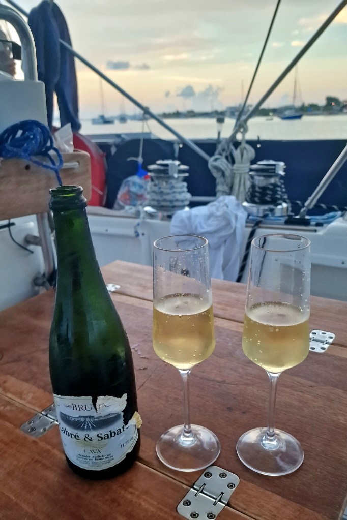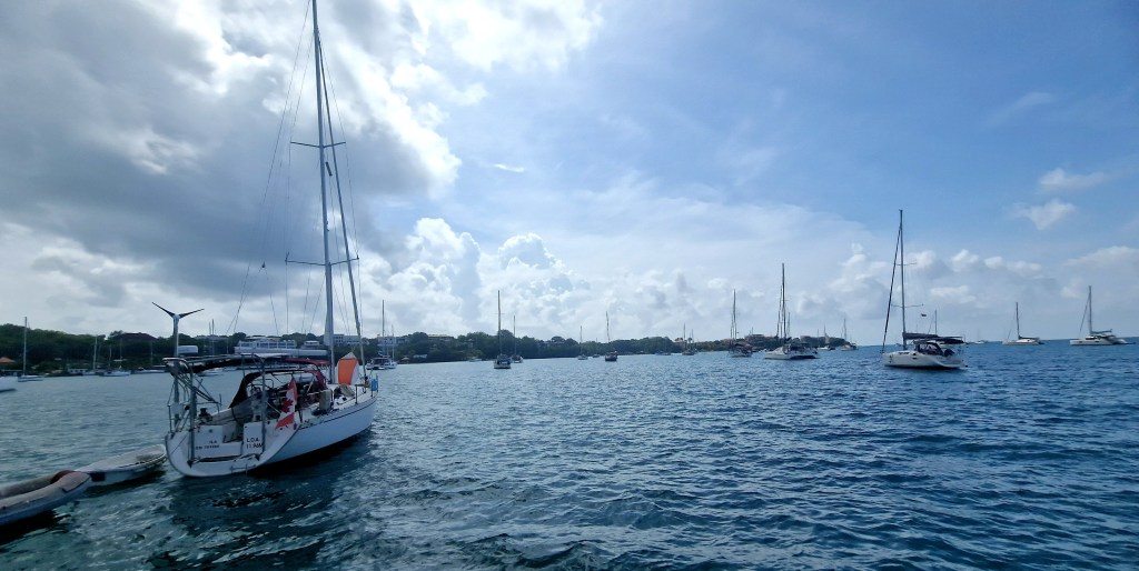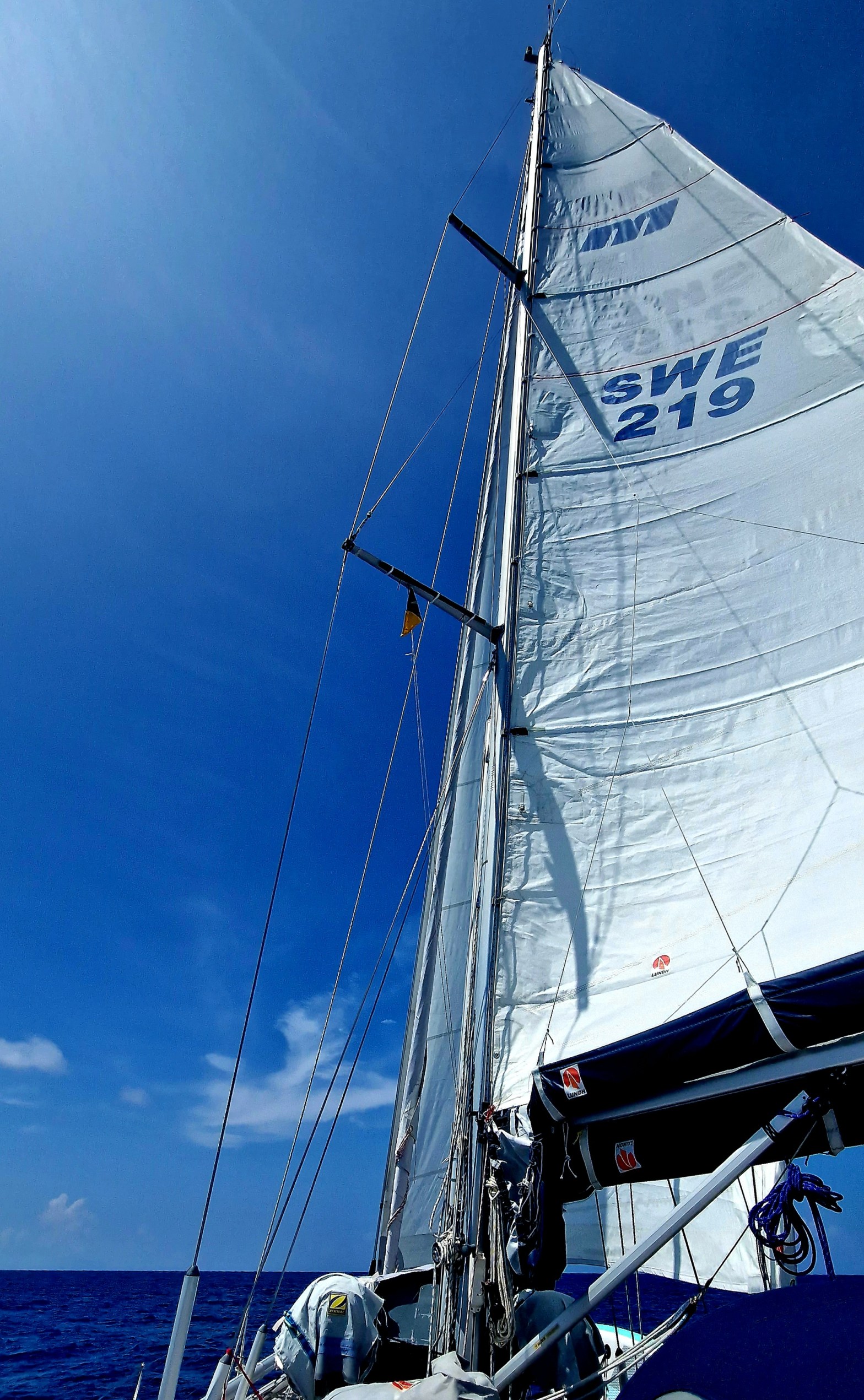 Dagen rullar på och vi har bra fart. Vi kan i och för sig inte gå rakt mot Kuba då vinden kommer från NO men vi har ett stort hav att kryssa på (segla zickzack mot vinden) och det är i stort sett inga andra båtar ute. Det tar mycket längre tid än med vind från rätt håll men det är en skön känsla att vara ute på havet igen.