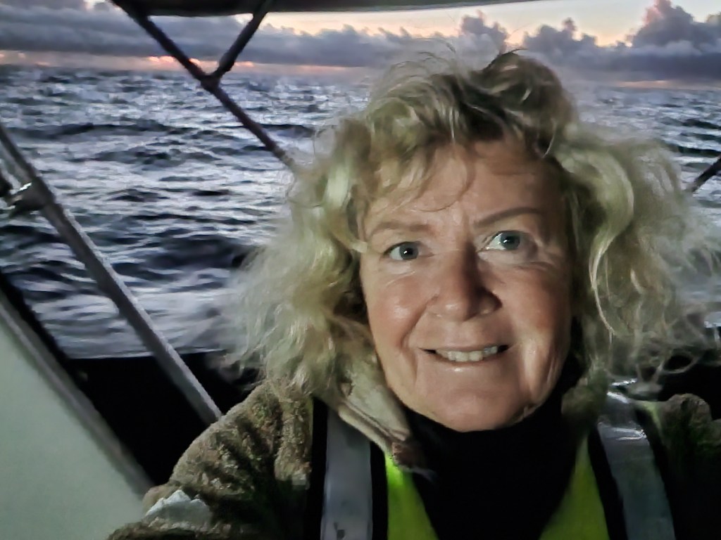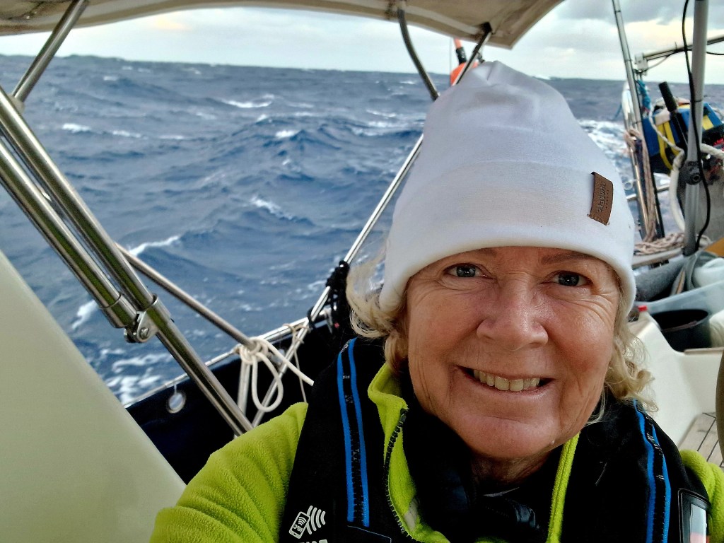 Dag 4 är vinden o havet lite ruffare. Båten har handstyrts stora delar av dagen då autopiloten inte riktigt hinner med i de yva vågorna.