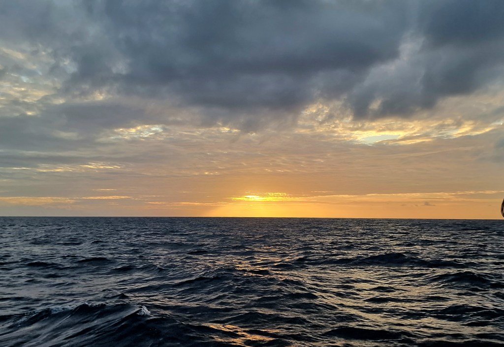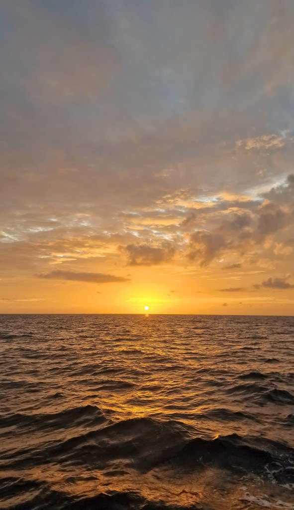 This first evening of the second leg we sail into the sunset which is directly in front of the bow of our boat. As magical as always with these sunsets and the play of colors in the sky.