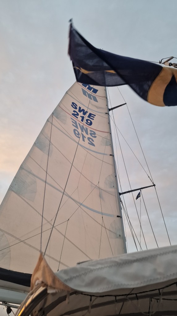 We sail out to the open sea once more. Sailing is very comfortable with the sail slanting in the stern. We maintain a high speed, up to eight knots, and it feels great. We both say that it’s almost a shame that the sailing will only be a little over two days this time. Love the freedom! Love the meditative! Love the feeling of being on the way to something new and exciting!