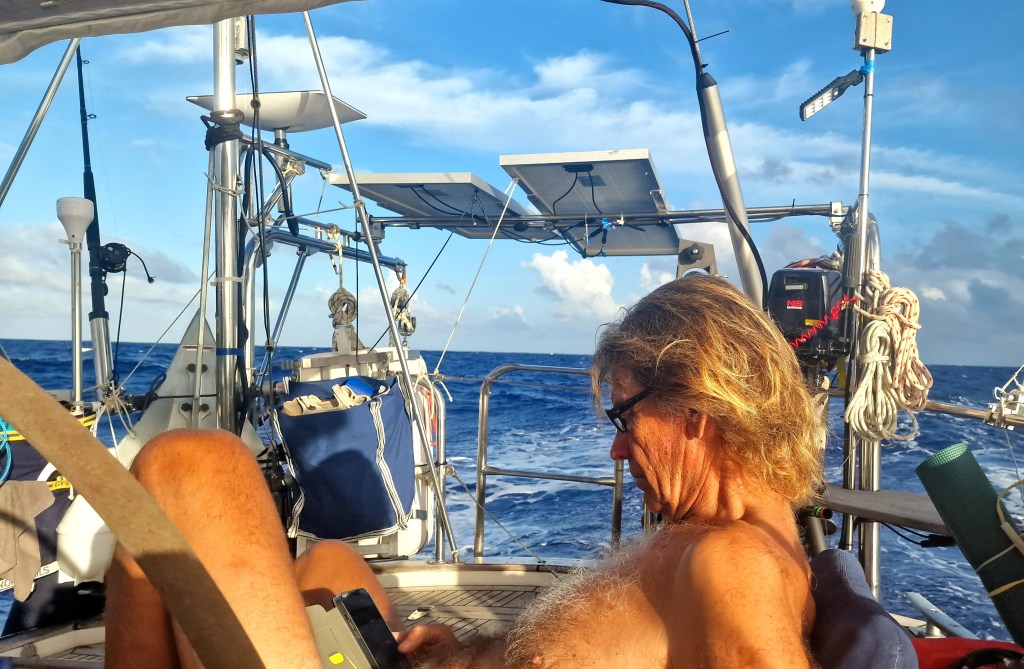 Vi seglar ut mot öppet hav än en gång. Seglingen är mycket bekväm med slör snett in i aktern. Vi håller en hög fart, uppemot åtta knop, och det känns härligt. Vi säger båda två att det nästan är synd att seglingen bara blir drygt två dygn denna gång. Älskar friheten! Älskar det meditativa! Älskar känslan att vara på väg till något nytt och spännande!