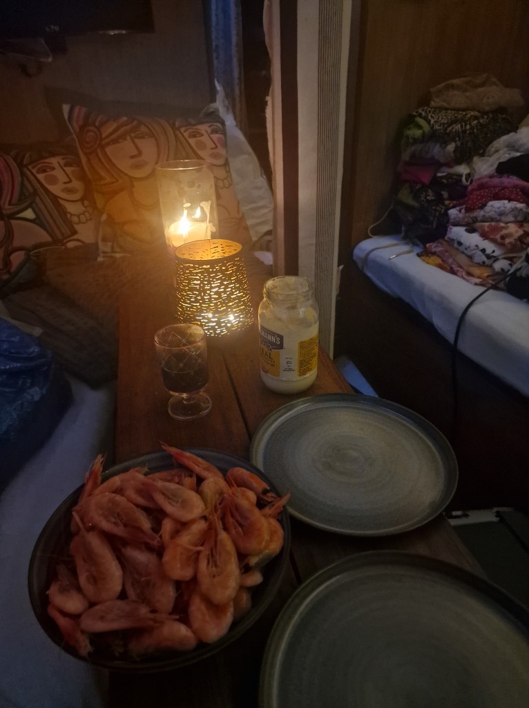 Som tack för att segelbåtar hjälper dem är de otroligt vänliga. Idag när vi kommer dit bjuder de in oss till middag. Det är en magisk kväll. Vi är 10 personer som spänt kommer in och hälsar på familjen. De är mitt uppe i matlagningen. Kokoskrabborna står och kokar i en kastrull med kokosmjölk och curry över öppen eld. Den nyfångad fisken skärs i småbitar och förvandlas med grönsaker och lime till en vacker ceviche. Den lilla pojken tycker det är spännande med nya folk som ger honom uppmärksamhet. Måste vara tråkigt att aldrig ha några vänner men han lever ändå ett behagligt liv. Vi sätter oss till bords och blir serverade en fantastiskt välsmakande måltid. Tänk att vi sitter här mitt ute i Stilla Havet och får äta kokoskrabba och ceviche! Familjen vill inte ha betalt för maten men de önskar att vi tar med mat och/eller praktiska saker till dem. Det är enda sättet de kan få mat till sig. Med seglare som kommer hit. De får både frukt, grönsaker, konserver, pasta och en massa andra saker som vi hoppas de får glädje av. Kvällen är jättelyckad och vi åker tillbaka med våra jollar mätta och belåtna och med mungiporna upp till öronen efter en magisk upplevelse.