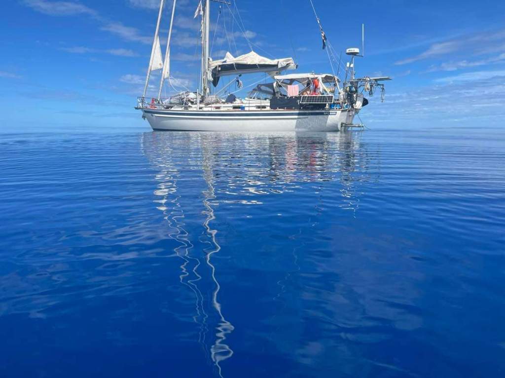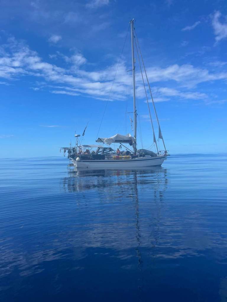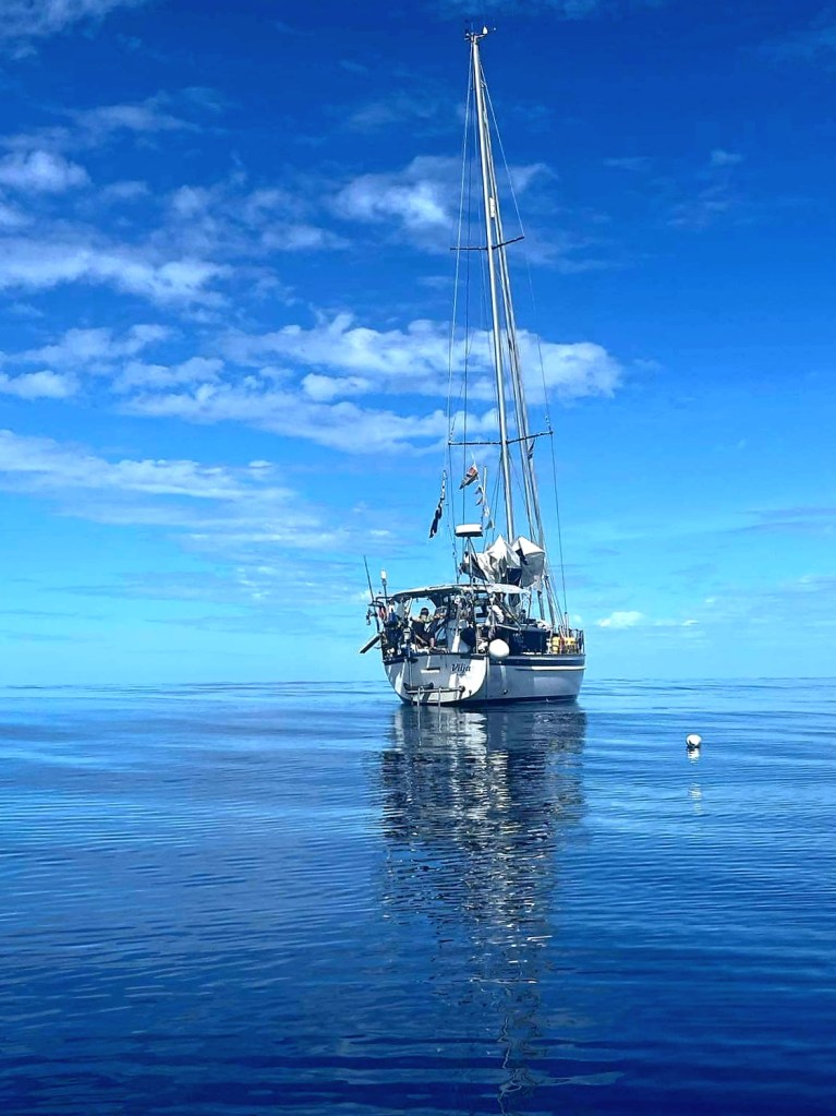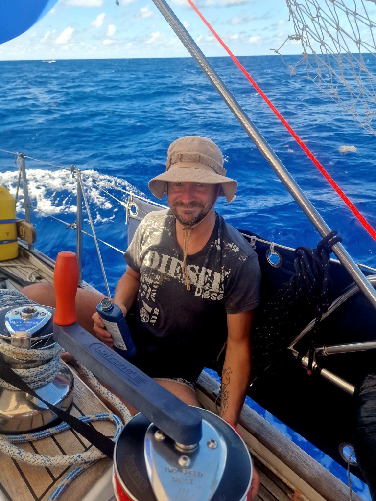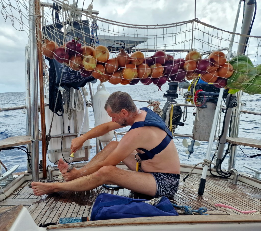 Sitting on the deck in the sun and enjoying. It’s a clear blue sky with small white clouds in beautiful formations. The sea is wonderfully turquoise and the view is still. The atoll we are in is full of palm trees that surround us. It is wonderfully peaceful, quiet and beautiful. We are on a largely deserted atoll. About 30 hours of sailing from Bora Bora due west. Four people live here and they only get a visit from a ferry about once a year, although it has now been two years since it was here. Then they come here and pick up the coconuts that they have collected to be used for copra production. The family consists of a woman and her 3-year-old son, her mother and uncle. The two men work on another island to earn money. They are more or less self-sufficient, eat the fish and coconut crabs they catch, use coconuts in cooking and grow some vegetables. In addition to this, sailboats that come there contribute food, vegetables and other necessities. Among other things, they are often on board a boat that has been there for a long time and are allowed to use the internet to keep in touch with the outside world.