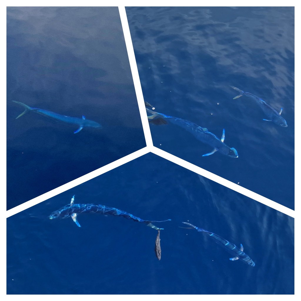 Today Jan is accompanying Magic to the pass into the atoll to snorkel. They jump into the water and hold the dinghy by a rope as they are carried out with the current to the outside through the pass. On the way they see the beautiful reef with lots of fish. Unfortunately, I don’t feel comfortable with that kind of snorkeling. Once on the outside they get the experience of a lifetime! About 300 meters from them, two whales are swimming. They wave their fins at them as if to say hello! This is a dream for all of us who are out at sea. Right now the whales are gathering here in the area to calve and to rest. In a month or so they will swim on again. I am so happy for Jan that he got this experience. Once on the outside they also snorkel on a wreck. A German warship from the First World War. The first time Jan snorkels on a wreck.