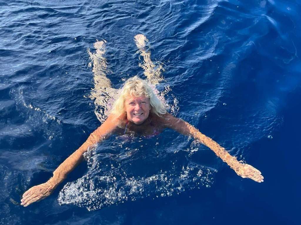 Idag följer Jan med Magic till passet in i atollen för att snorkla. De hoppar i vattnet och håller jollen i ett rep när de förs ut med strömmen till utsidan genom passet. På vägen får de se det vackra revet med mängder av fiskar. Jag känner mig tyvärr inte bekväm med den sortens snorkling. Väl på utsidan får de sitt livs upplevelse! Ca 300 meter från dem simmar två valar. De vinkar med fenan mot dem som för att säga hej! Detta är en dröm för alla oss som är ute på havet. Just nu samlas ju valarna här i området för att kalva och för att vila. Om någon månad simmar de vidare igen. Är så glad för Jans skull att han fick denna upplevelse. Väl på utsidan snorklar de också på ett vrak. Ett tyskt krigsfartyg från första världskriget. Första gången Jan snorklar på ett vrak.