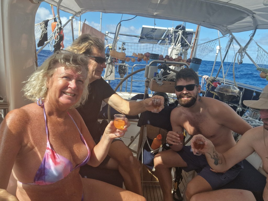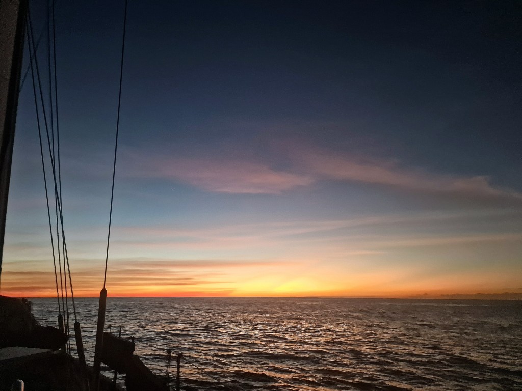 We roll, we roll, we roll, we roll 🎼🎼🎼. Yep, that’s right. The wind has almost died down so the engine is started. But of course we roll regardless. Right now we’re almost heading straight towards the sunset. It’s just sooo beautiful. Open sea all around us. We are, as I said, heading towards Maupiha’a which also belongs to French Polynesia. Actually, we’re not allowed to go there because we’re stamped out. But pretty much everyone does. There we’ll wait out the weak winds that will last for a few days now. Then it’s adventure! We’ll arrive tomorrow around lunchtime. Both Aura and Magic are heading towards the same destination. Behind us we have 2-3 more boats leaving French Polynesia in this weather window