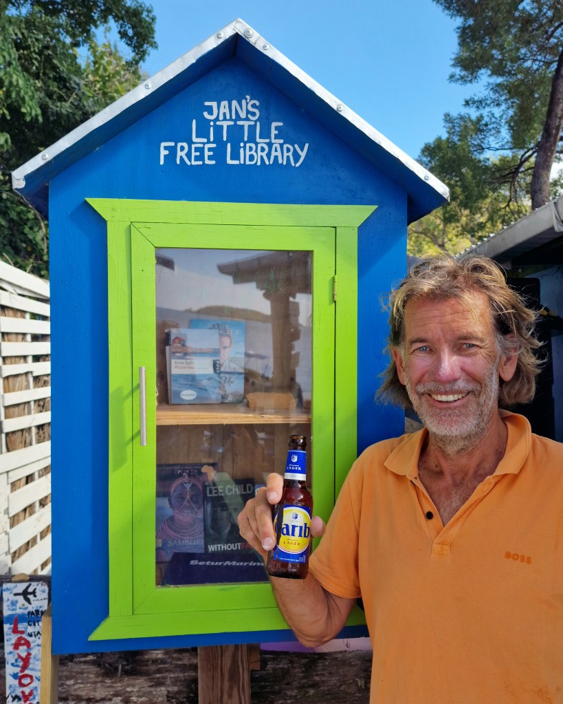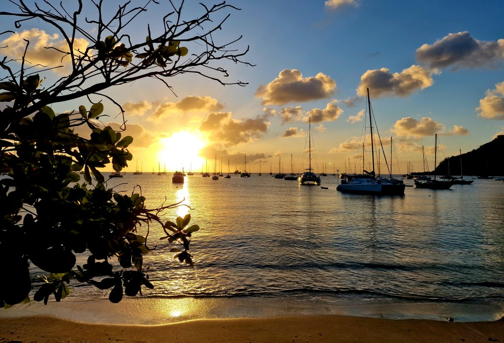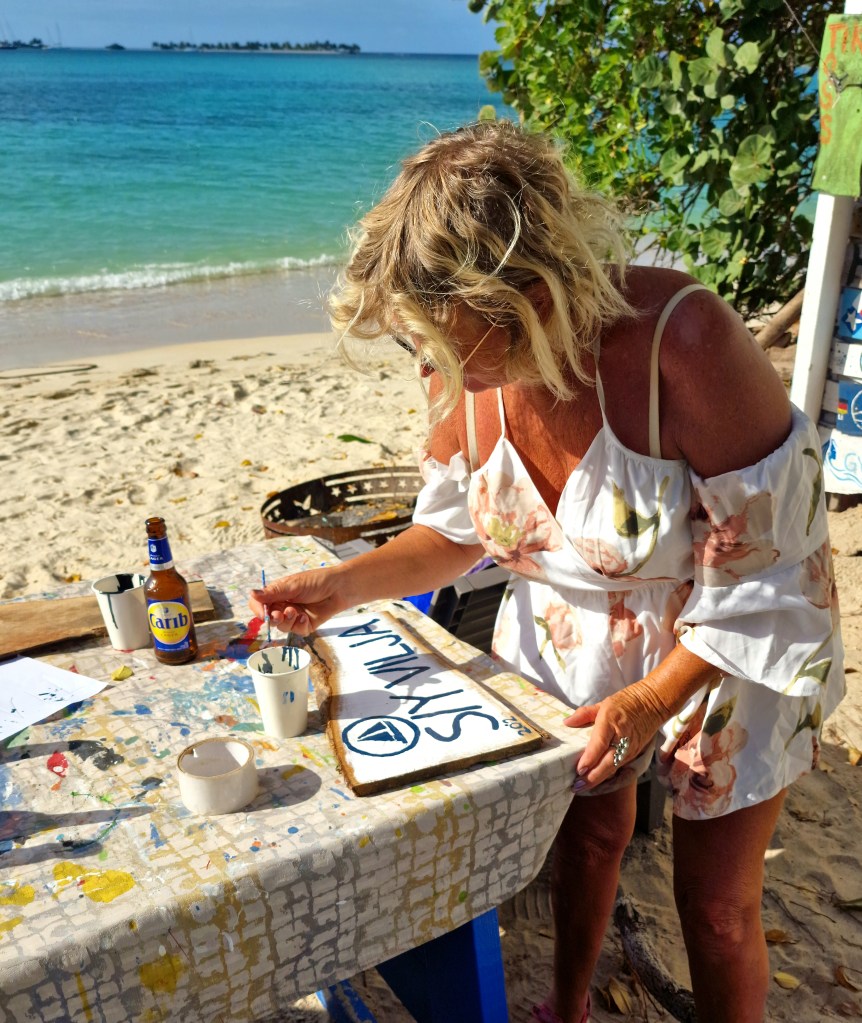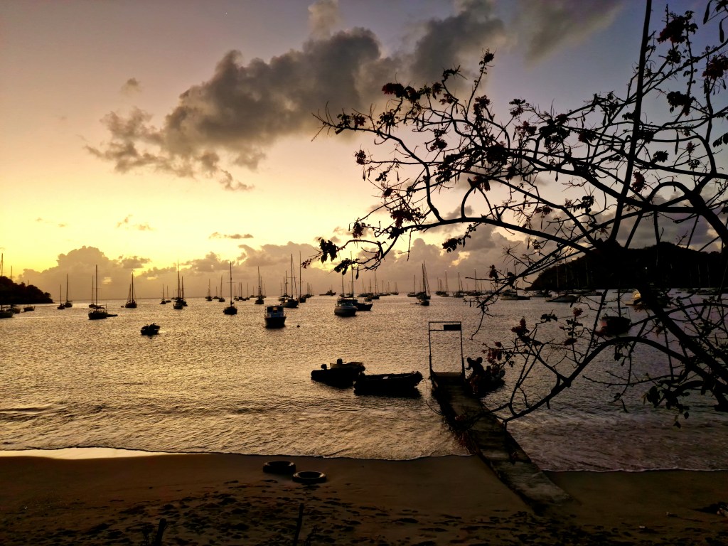 This afternoon we have started a BBQ on the beach. We ask the family if it is ok and invite them too. Jan and I are the first in and start collecting firewood, coconuts and dry twigs to start the fire. We collect everything in a pit we have dug and light it. Gradually all the sailors appear and three of the family also come. The oldest woman is active in keeping the fire alive and then she sits with us women and teaches us to braid beautiful stars out of palm leaves. All while the fire fades and the embers start to take off. All the sailors on nine boats are present and the atmosphere is high. The food is grilled, the sun sets and the party continues. We stay for quite a while but leave before the last ones put out the fire and go home. What a successful evening! And it will be a wonderful goodbye to French Polynesia.