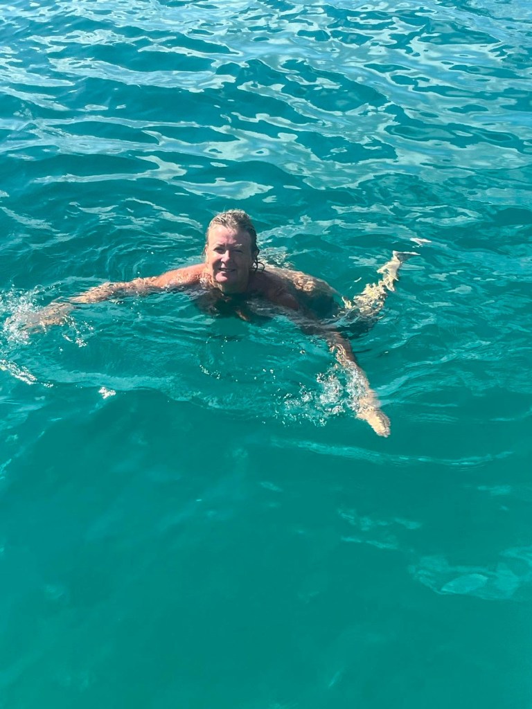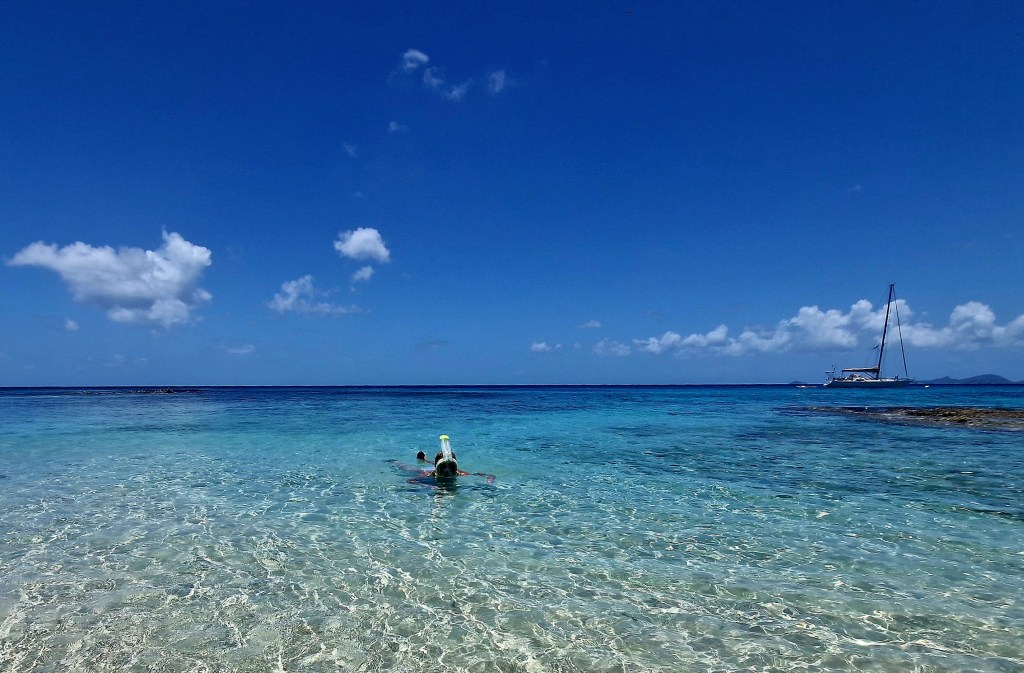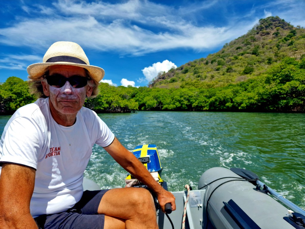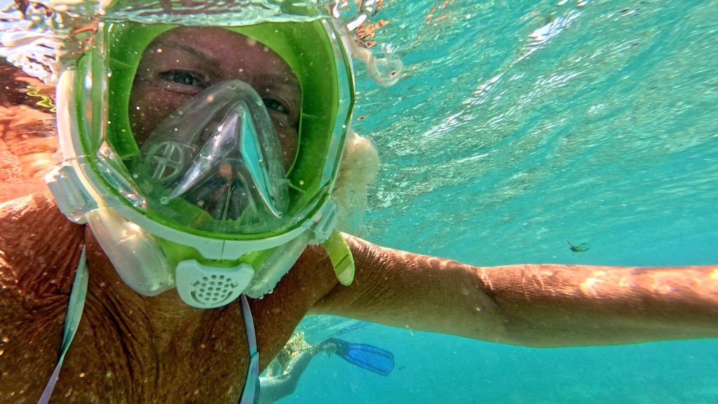 Idag följer Jan med Magic till passet in i atollen för att snorkla. De hoppar i vattnet och håller jollen i ett rep när de förs ut med strömmen till utsidan genom passet. På vägen får de se det vackra revet med mängder av fiskar. Jag känner mig tyvärr inte bekväm med den sortens snorkling. Väl på utsidan får de sitt livs upplevelse! Ca 300 meter från dem simmar två valar. De vinkar med fenan mot dem som för att säga hej! Detta är en dröm för alla oss som är ute på havet. Just nu samlas ju valarna här i området för att kalva och för att vila. Om någon månad simmar de vidare igen. Är så glad för Jans skull att han fick denna upplevelse. Väl på utsidan snorklar de också på ett vrak. Ett tyskt krigsfartyg från första världskriget. Första gången Jan snorklar på ett vrak.