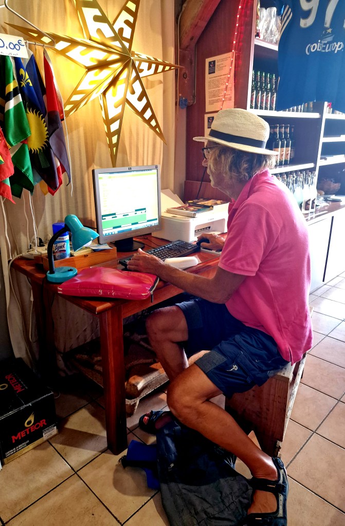 Första dagen på Bora Bora påbörjar vi vår utcheckning från Franska Polynesien. Först har vi uppdaterat när vi skall lämna online och sedan går vi till gendarmeriet. De tittar på våra pass och vi får en avtalad tid när vi skall hämta vår ”zarpe”, ett slags dokument som visar att vi får lämna och vart vår nästa tilltänkta mål är. Så idag på morgonen går vi dit igen, får vår zarpe och passen stämplade. Så nu är vi på väg till nästa land efter fem månader i detta fantastiskt vackra och mångsidiga land, Franska Polynesien.