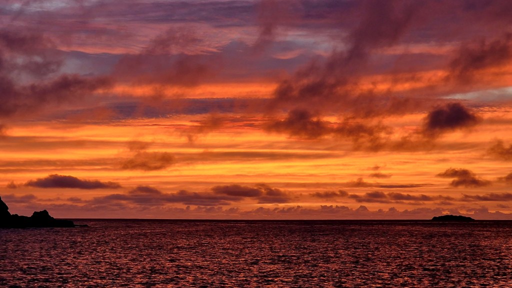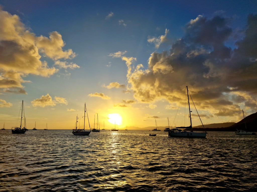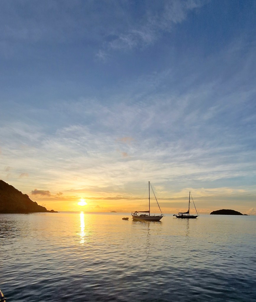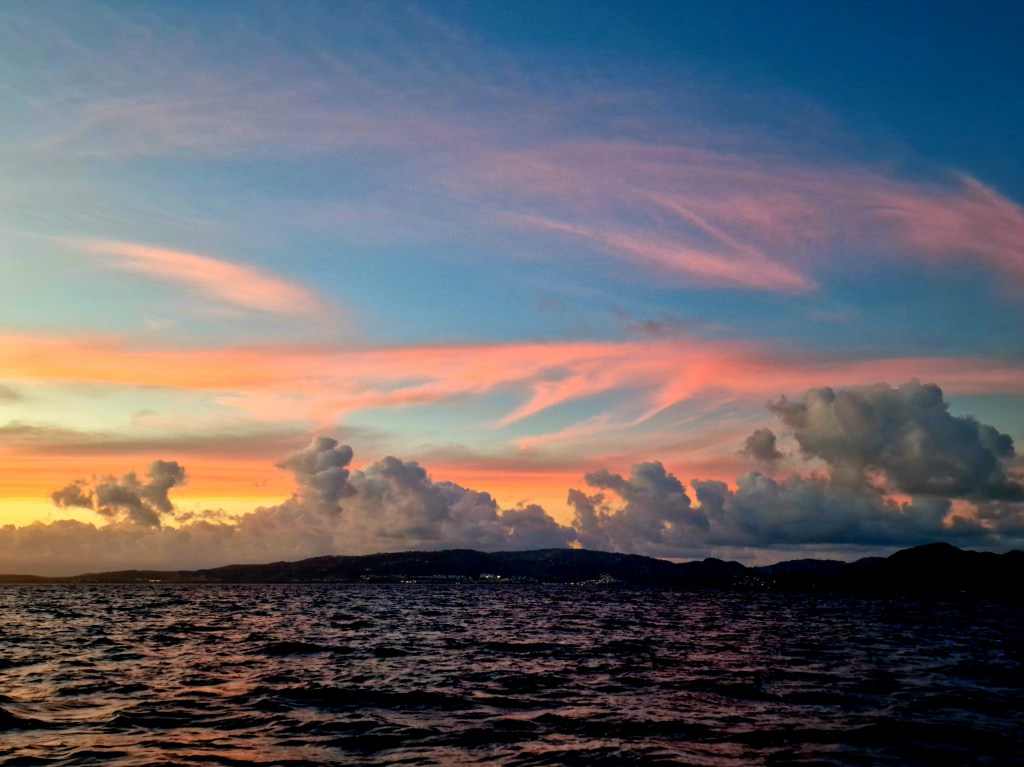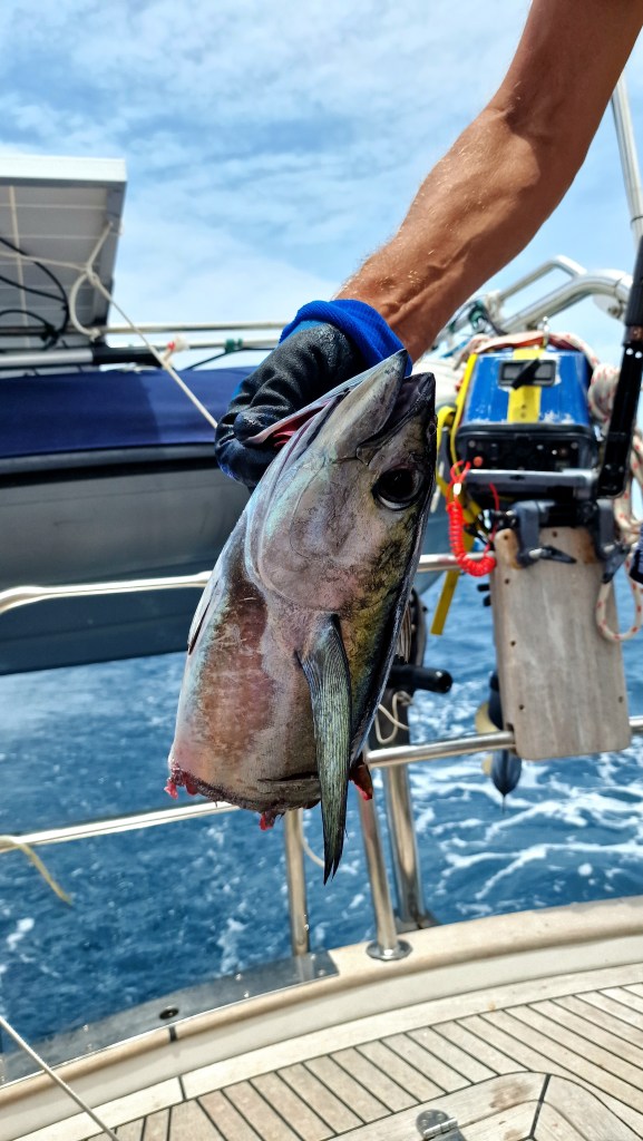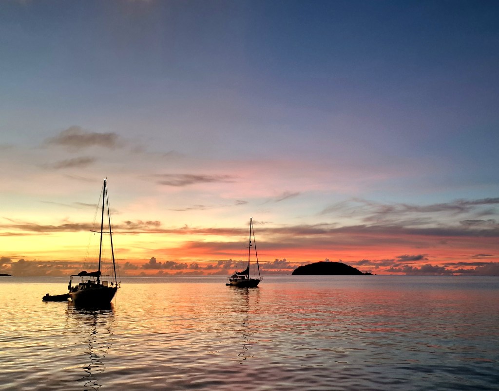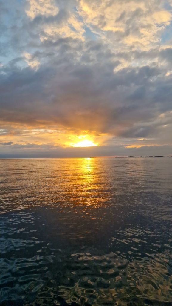 We roll, we roll, we roll, we roll 🎼🎼🎼. Yep, that’s right. The wind has almost died down so the engine is started. But of course we roll regardless. Right now we’re almost heading straight towards the sunset. It’s just sooo beautiful. Open sea all around us. We are, as I said, heading towards Maupiha’a which also belongs to French Polynesia. Actually, we’re not allowed to go there because we’re stamped out. But pretty much everyone does. There we’ll wait out the weak winds that will last for a few days now. Then it’s adventure! We’ll arrive tomorrow around lunchtime. Both Aura and Magic are heading towards the same destination. Behind us we have 2-3 more boats leaving French Polynesia in this weather window