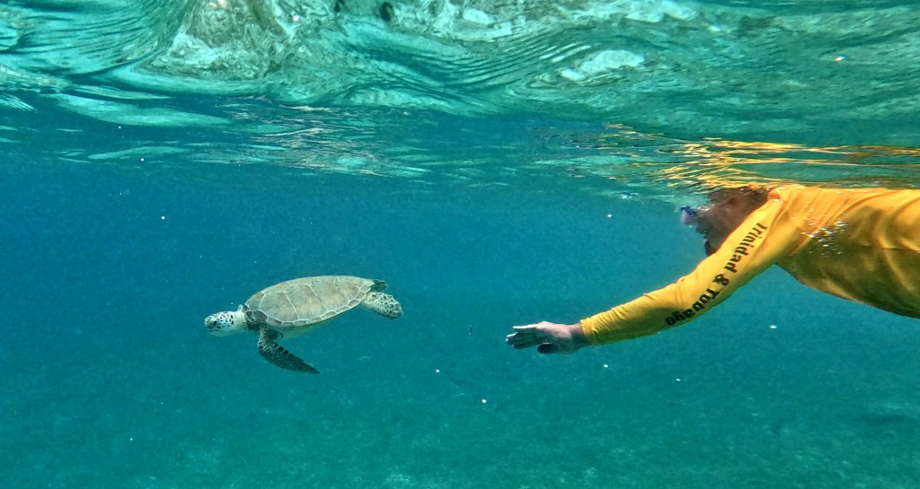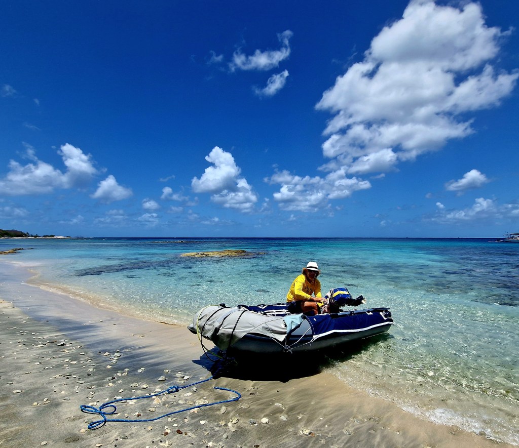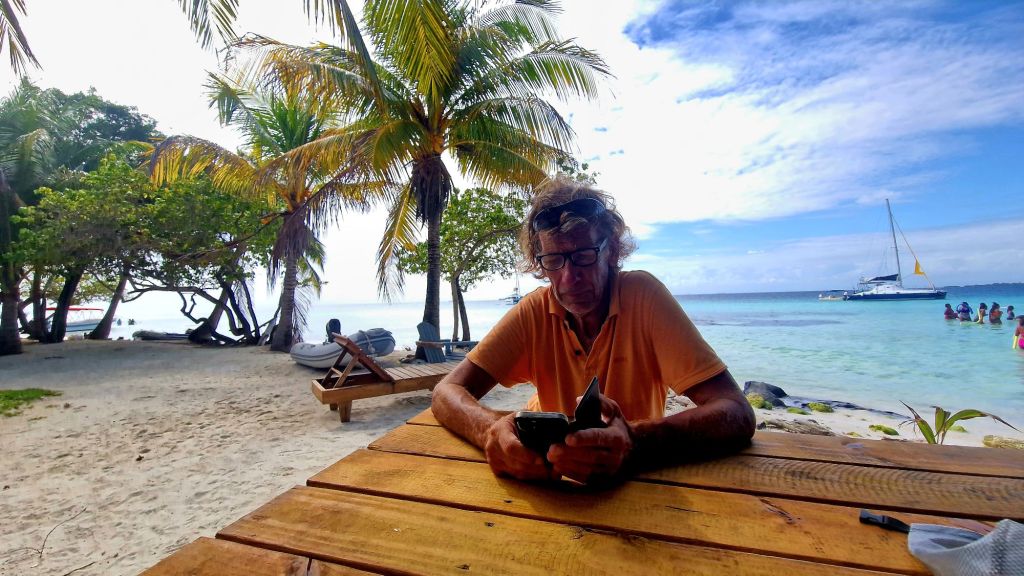 Today Jan is accompanying Magic to the pass into the atoll to snorkel. They jump into the water and hold the dinghy by a rope as they are carried out with the current to the outside through the pass. On the way they see the beautiful reef with lots of fish. Unfortunately, I don’t feel comfortable with that kind of snorkeling. Once on the outside they get the experience of a lifetime! About 300 meters from them, two whales are swimming. They wave their fins at them as if to say hello! This is a dream for all of us who are out at sea. Right now the whales are gathering here in the area to calve and to rest. In a month or so they will swim on again. I am so happy for Jan that he got this experience. Once on the outside they also snorkel on a wreck. A German warship from the First World War. The first time Jan snorkels on a wreck.