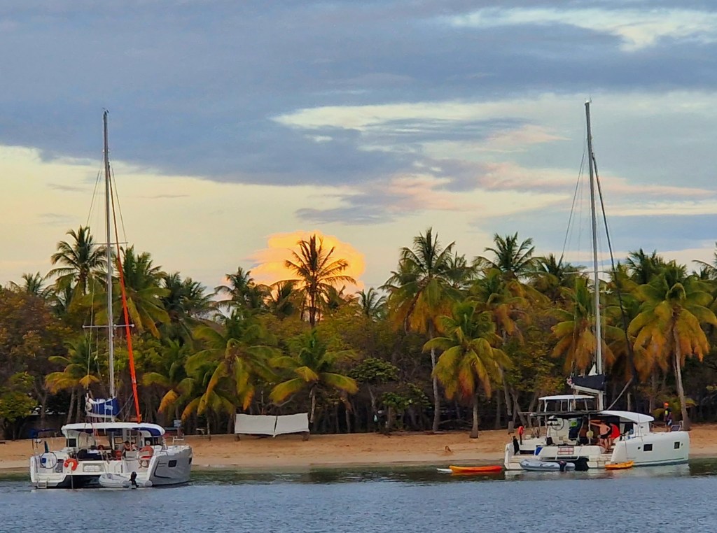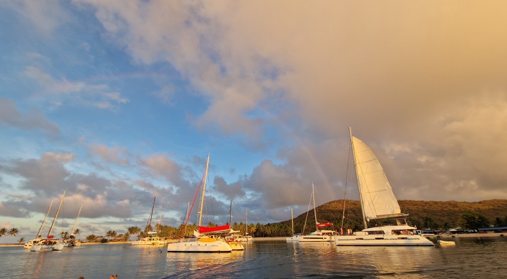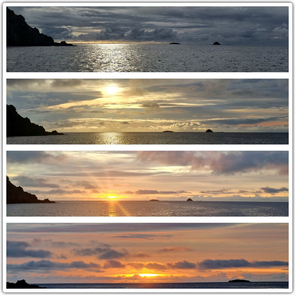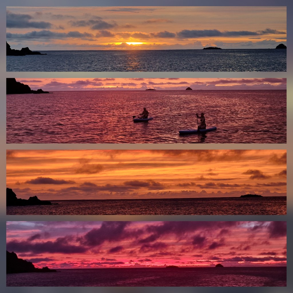 Vi rullar, vi rullar, vi rullar, vi rullar 🎼🎼🎼. Japp så är det. Vinden har nästan tagit slut så motorn är startad. Men rullar gör vi självklart oavsett. Just nu går vi nästan rakt mot solnedgången. Det är ju bara sååå vackert. Öppet hav runt oss. Vi är, som sagt, på väg mot Maupiha’a som också tillhör Franska Polynesien. Egentligen får vi inte lov att gå dit eftersom vi är utstämplade. Men i stort sett alla gör det. Där skall vi vänta ut de svaga vindar som kommer vara i några dagar nu. Sedan blir det äventyr! Vi kommer komma fram imorgon runt lunch. Både Aura o Magic är på väg mot sama mål. Bakom oss har vi ytterligare 2-3 båtar som lämnar Franska Polynesien i detta väderfönstret