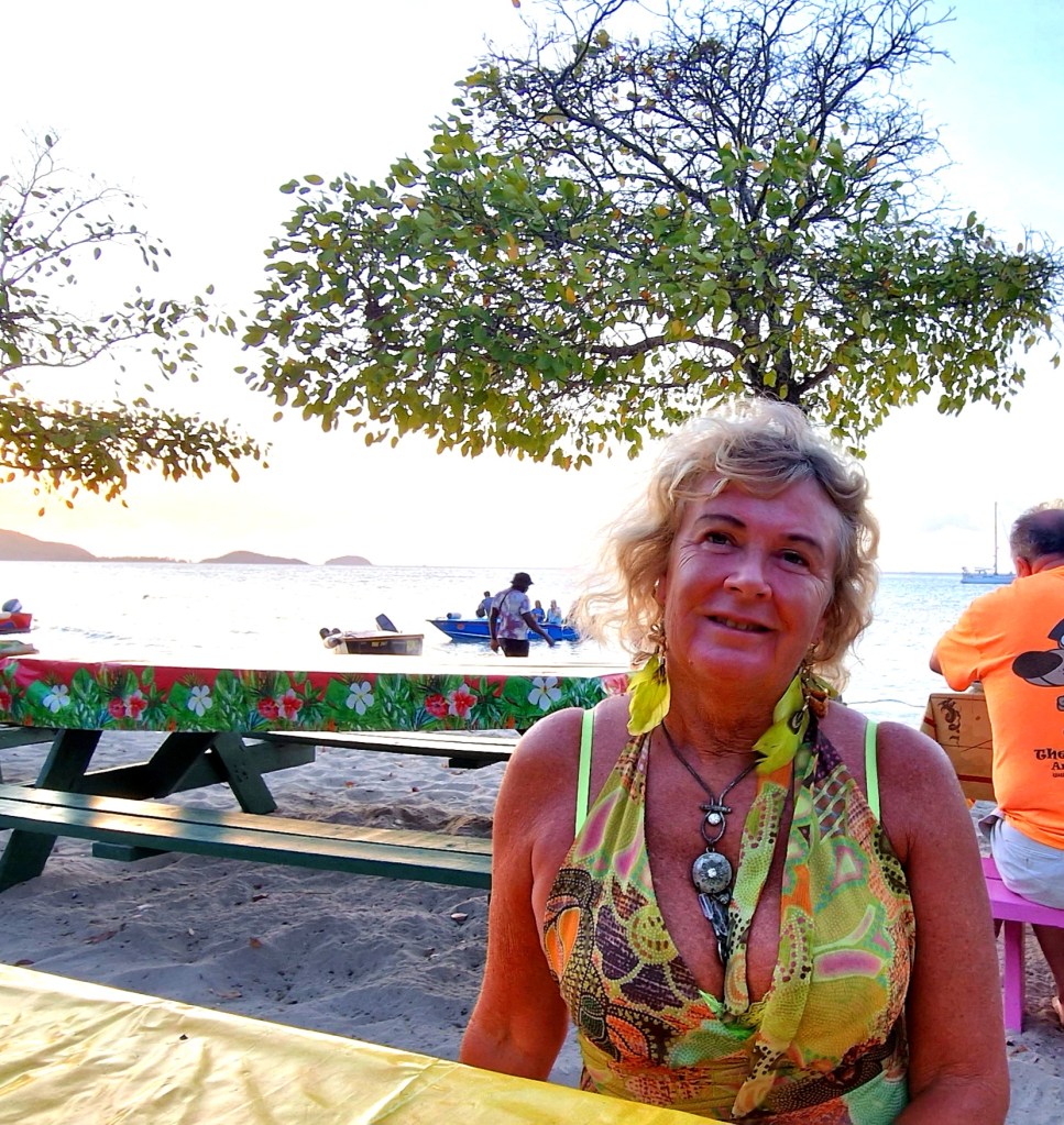 Nu på eftermiddagen har vi dragit igång till en bbq på stranden. Vi frågar familjen om det är ok och bjuder in även dem. Jan och jag är först inne och börjar samla ved, kokosnötter och torra kvistar till att starta elden. Vi samlar allt i en grop vi grävt och tänder på. Undan för undan dyker alla seglare upp och även tre i familjen kommer. Äldsta kvinnan är aktiv med att hålla liv i elden och sedan sitter hon med oss kvinnor och lär oss fläta vackra stjärnor av palmblad. Allt medan elden falnar och glöden börjar ta fart. Alla seglare på nio båtar är närvarande och stämningen är hög. Maten grillas, solen går ner och festen fortsätter. Vi är kvar ganska länge men lämnar innan de sista släcker elden och går hem. Vilken lyckad kväll! Och det blir ett underbart hejdå till Franska Polynesien.